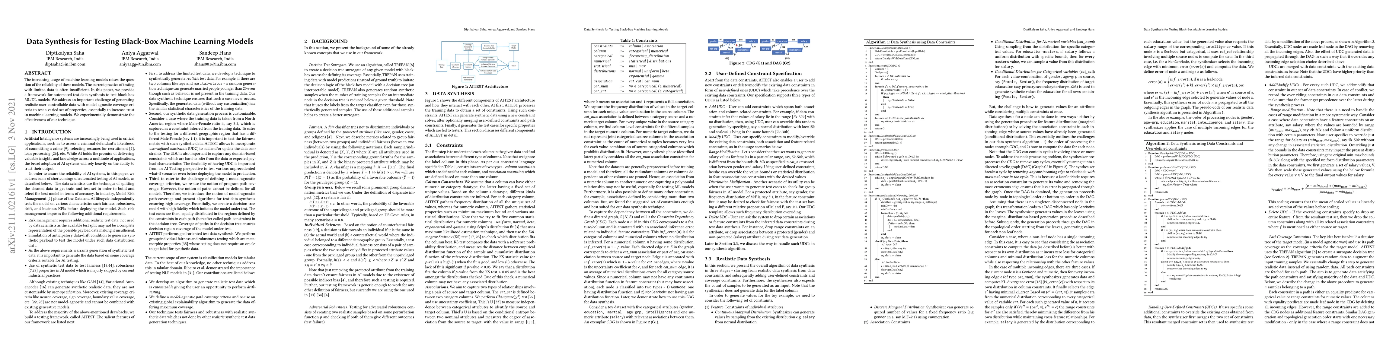 The increasing usage of machine learning models raises the question of the reliability of these models. The current practice of testing with limited data is often insufficient. In this paper, we provide a framework for automated test data synthesis to test black-box ML/DL models. We address an important challenge of generating realistic user-controllable data with model agnostic coverage criteria to test a varied set of properties, essentially to increase trust in machine learning models. We experimentally demonstrate the effectiveness of our technique.