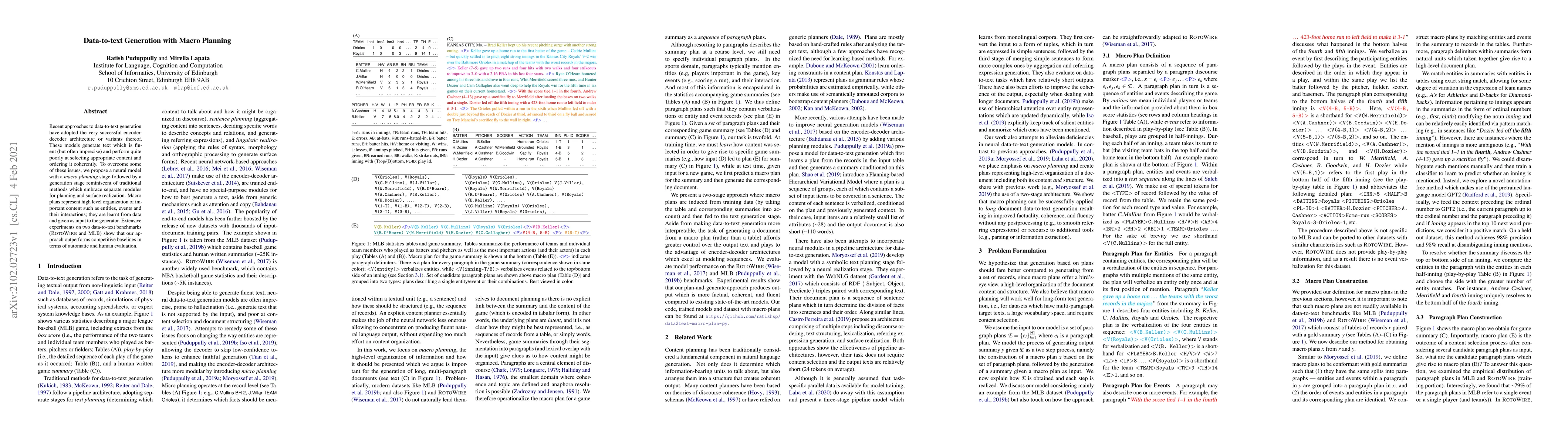 Ratish Puduppully, Mirella Lapata, Yao Fu