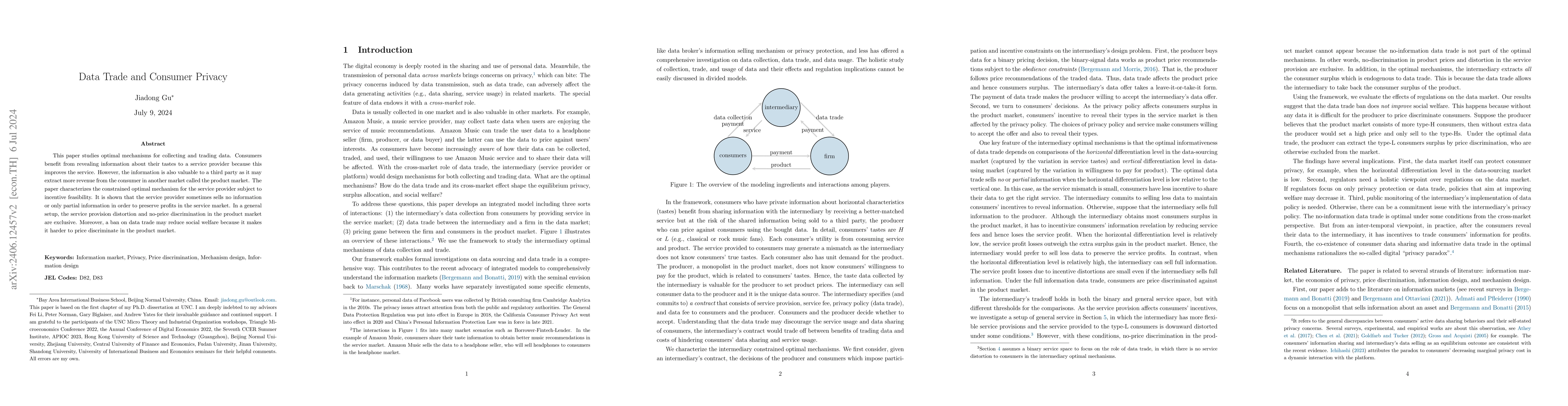 This paper examines optimal data collection and trading mechanisms, showing that service providers may withhold or partially share consumer data to maximize profits, which can reduce social welfare by limiting price discrimination in the product market. A ban on data trade may therefore be counterproductive.