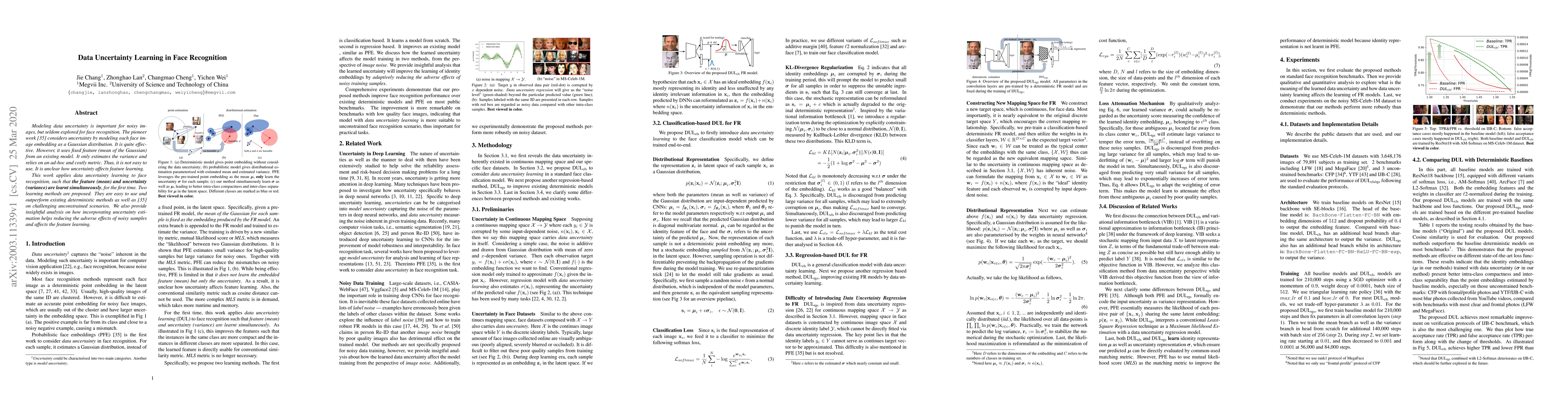 Researchers developed a new approach for face recognition that incorporates data uncertainty learning, improving performance on noisy images. Their method learns both the feature (mean) and uncertainty (variance) simultaneously, outperforming existing methods.
