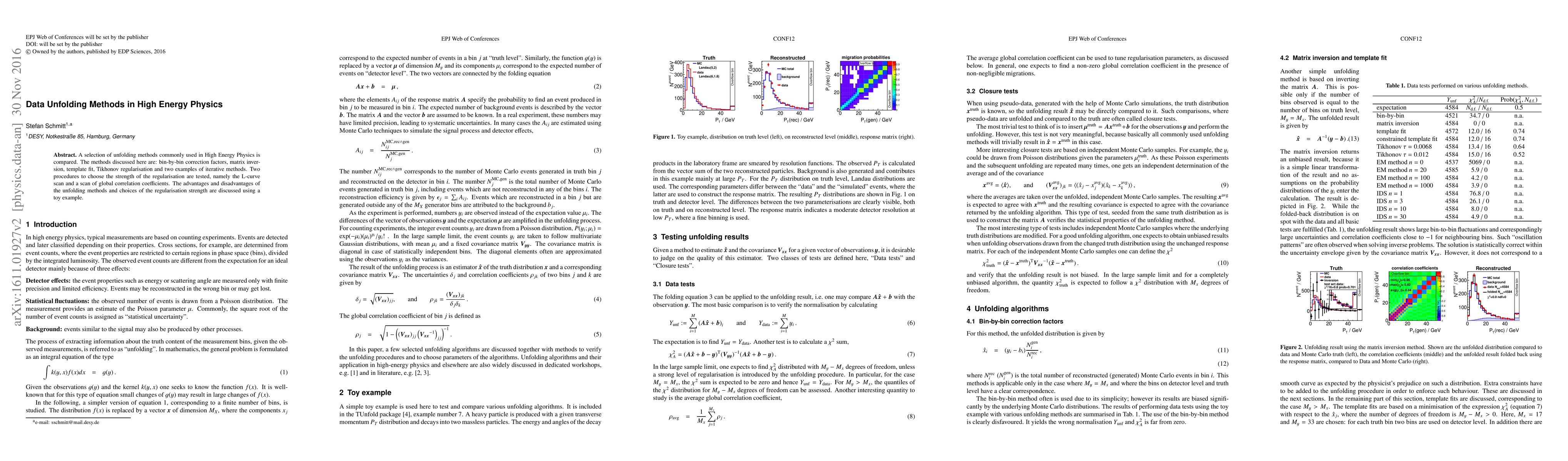 A selection of unfolding methods commonly used in High Energy Physics is compared. The methods discussed here are: bin-by-bin correction factors, matrix inversion, template fit, Tikhonov regularisation and two examples of iterative methods. Two procedures to choose the strength of the regularisation are tested, namely the L-curve scan and a scan of global correlation coefficients. The advantages and disadvantages of the unfolding methods and choices of the regularisation strength are discussed using a toy example.
