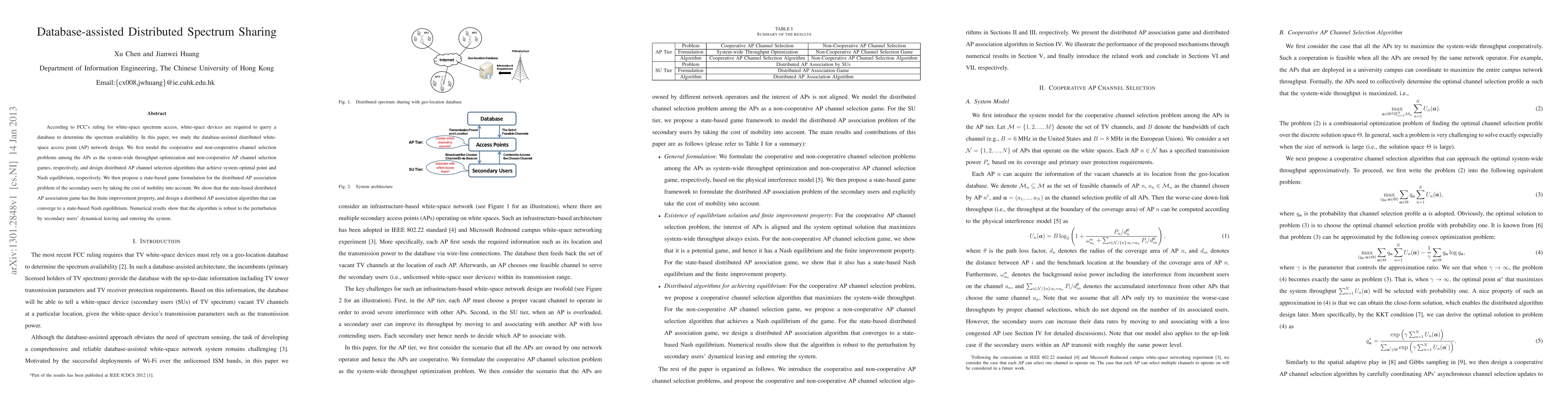 According to FCC's ruling for white-space spectrum access, white-space devices are required to query a database to determine the spectrum availability. In this paper, we study the database-assisted distributed white-space access point (AP) network design. We first model the cooperative and non-cooperative channel selection problems among the APs as the system-wide throughput optimization and non-cooperative AP channel selection games, respectively, and design distributed AP channel selection algorithms that achieve system optimal point and Nash equilibrium, respectively. We then propose a state-based game formulation for the distributed AP association problem of the secondary users by taking the cost of mobility into account. We show that the state-based distributed AP association game has the finite improvement property, and design a distributed AP association algorithm that can converge to a state-based Nash equilibrium. Numerical results show that the algorithm is robust to the perturbation by secondary users' dynamical leaving and entering the system.
