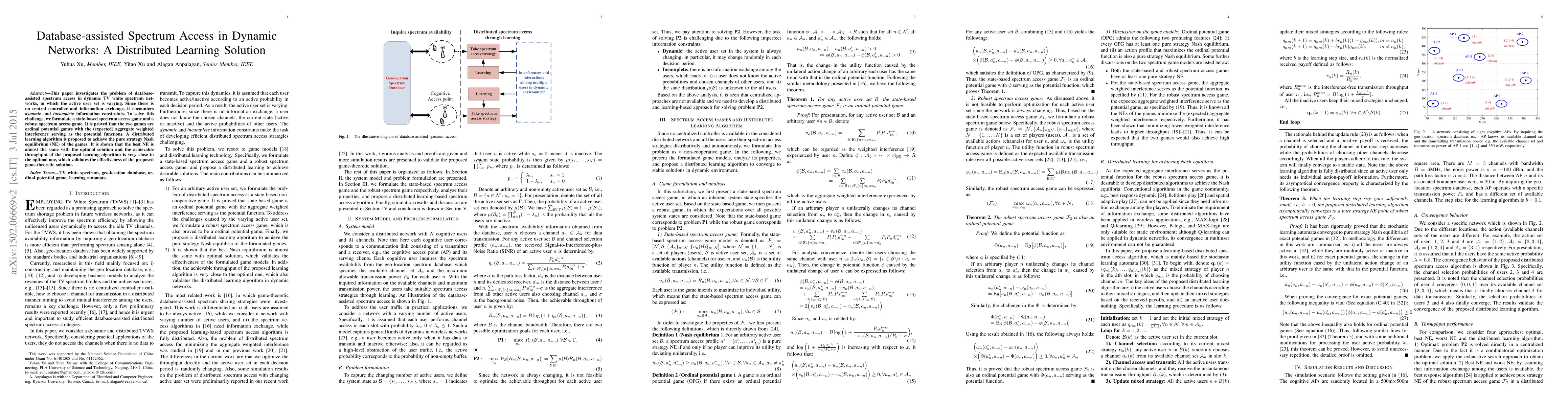 This paper investigates the problem of database-assisted spectrum access in dynamic TV white spectrum networks, in which the active user set is varying. Since there is no central controller and information exchange, it encounters dynamic and incomplete information constraints. To solve this challenge, we formulate a state-based spectrum access game and a robust spectrum access game. It is proved that the two games are ordinal potential games with the (expected) aggregate weighted interference serving as the potential functions. A distributed learning algorithm is proposed to achieve the pure strategy Nash equilibrium (NE) of the games. It is shown that the best NE is almost the same with the optimal solution and the achievable throughput of the proposed learning algorithm is very close to the optimal one, which validates the effectiveness of the proposed game-theoretic solution.