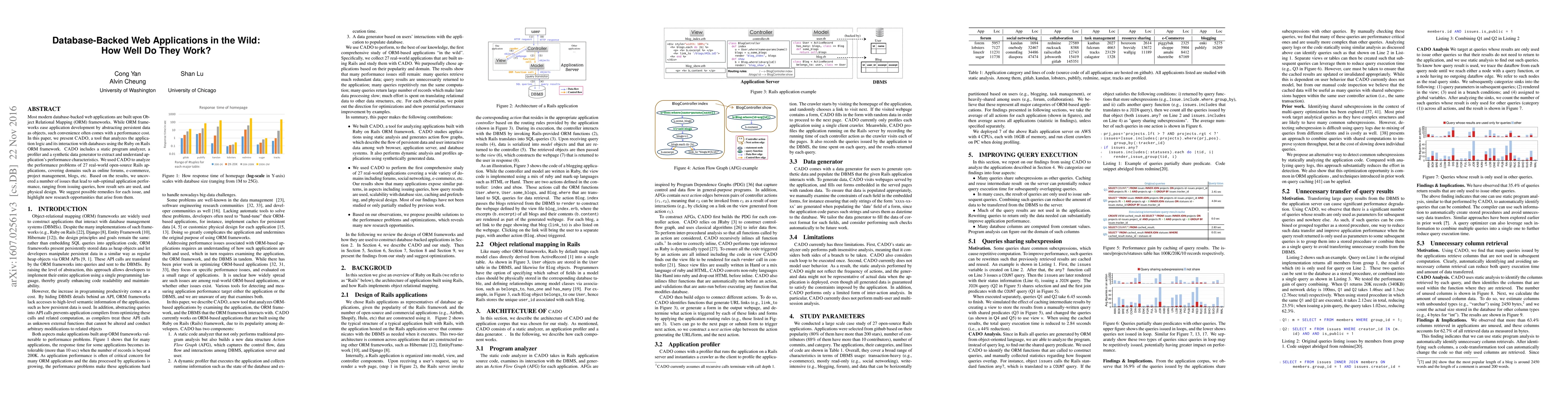 This paper introduces CADO, a tool for analyzing performance issues in Ruby on Rails applications using ORM frameworks, and finds various sub-optimal performance factors in 27 real-world open-source applications, suggesting remedies and new research opportunities.