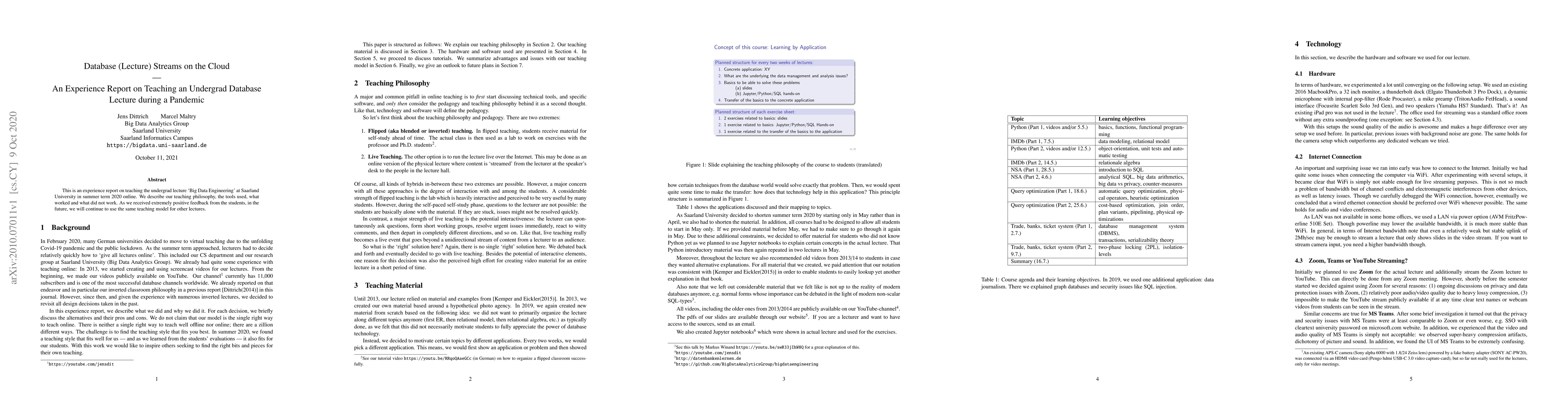 This is an experience report on teaching the undergrad lecture Big Data Engineering at Saarland University in summer term 2020 online. We describe our teaching philosophy, the tools used, what worked and what did not work. As we received extremely positive feedback from the students, in the future, we will continue to use the same teaching model for other lectures.