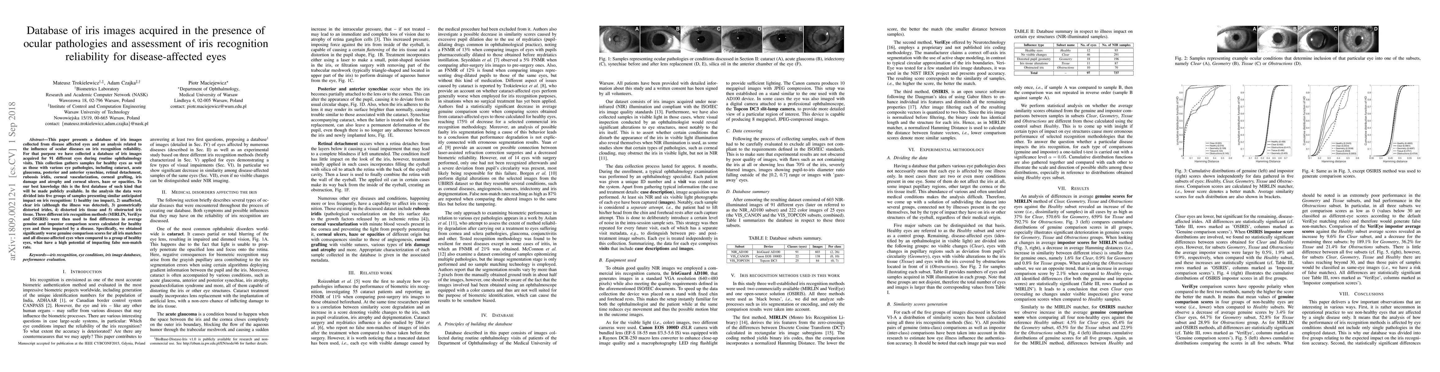 This paper introduces a publicly available database of iris images from eyes with various pathologies and assesses the reliability of iris recognition in these conditions. The study found that disease-affected eyes generally yield worse genuine comparison scores in iris recognition, potentially increasing the false non-match rate.