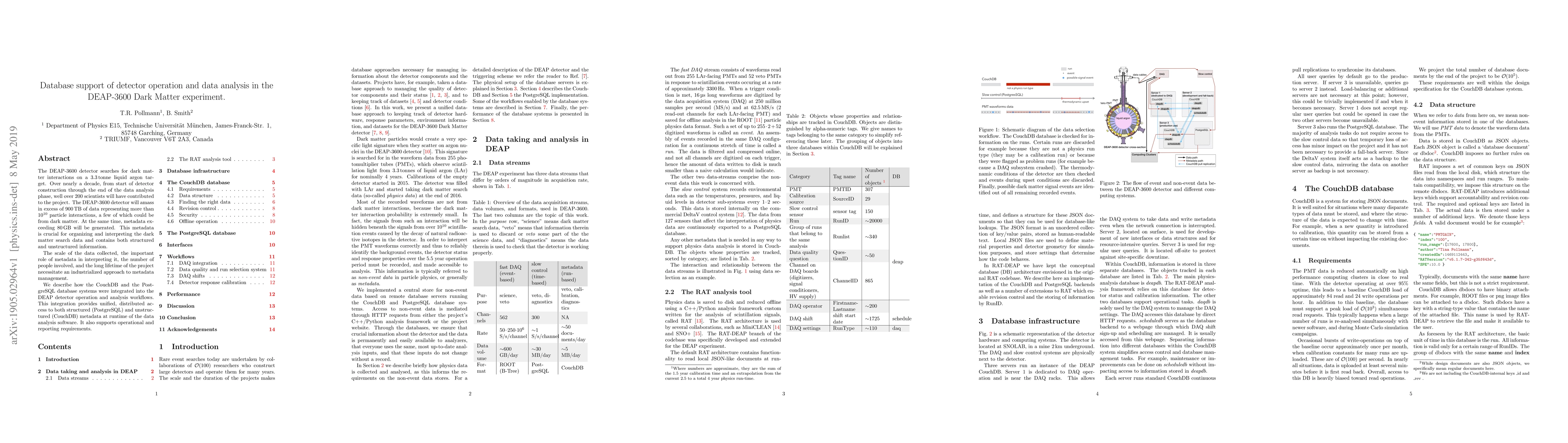 The DEAP-3600 detector searches for dark matter interactions on a 3.3 tonne liquid argon target. Over nearly a decade, from start of detector construction through the end of the data analysis phase, well over 200 scientists will have contributed to the project. The DEAP-3600 detector will amass in excess of 900 TB of data representing more than 10$^{10}$ particle interactions, a few of which could be from dark matter. At the same time, metadata exceeding 80 GB will be generated. This metadata is crucial for organizing and interpreting the dark matter search data and contains both structured and unstructured information. The scale of the data collected, the important role of metadata in interpreting it, the number of people involved, and the long lifetime of the project necessitate an industrialized approach to metadata management. We describe how the CouchDB and the PostgreSQL database systems were integrated into the DEAP detector operation and analysis workflows. This integration provides unified, distributed access to both structured (PostgreSQL) and unstructured (CouchDB) metadata at runtime of the data analysis software. It also supports operational and reporting requirements.