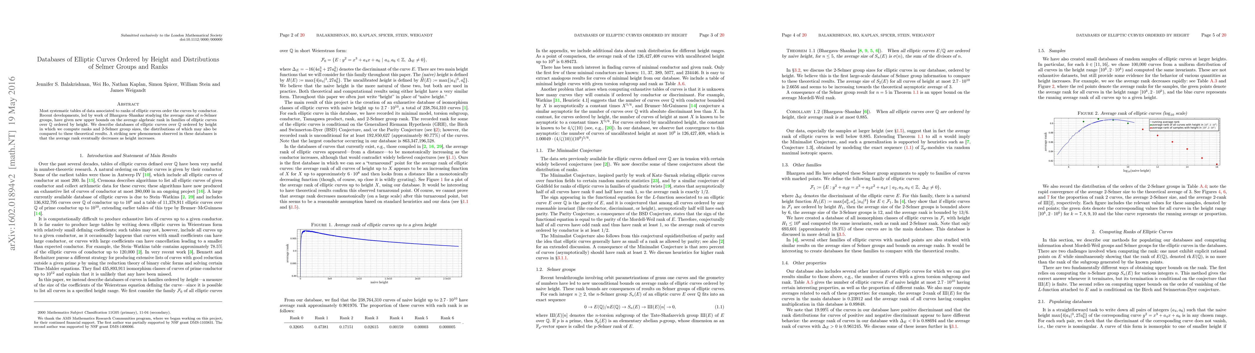This paper presents databases of elliptic curves ordered by height, computing their ranks and 2-Selmer group sizes, and observes a surprising trend where the average rank decreases as height increases, contrasting with previous studies that order curves by conductor.