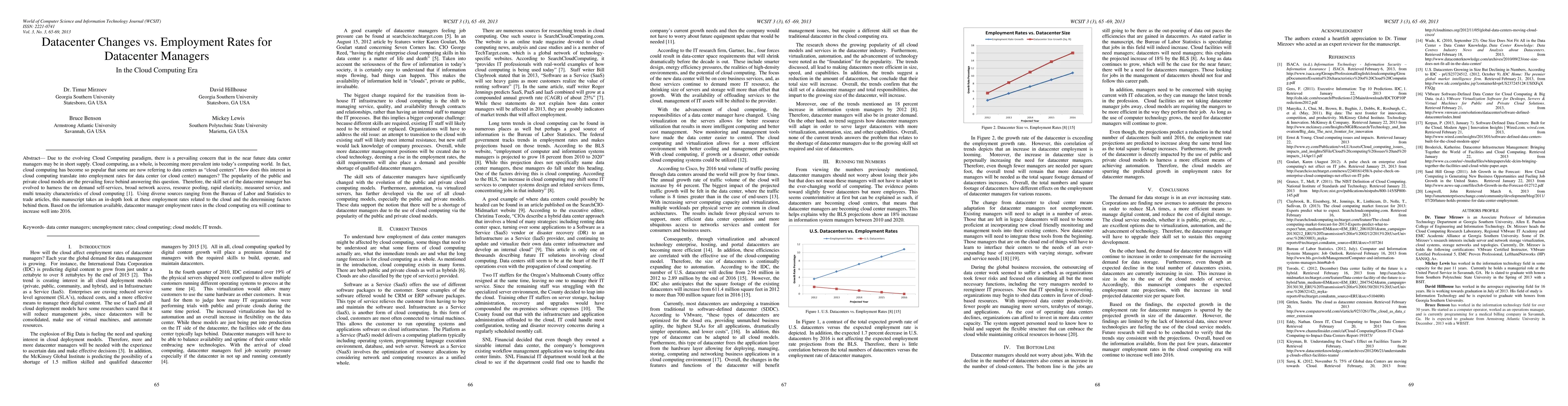 This paper examines the evolving employment rates for data center managers amid the rise of cloud computing, highlighting how the skill set required for these roles has adapted to cloud characteristics. The study concludes that despite concerns, data center manager employment rates will likely continue to rise due to the growing prevalence of cloud computing.