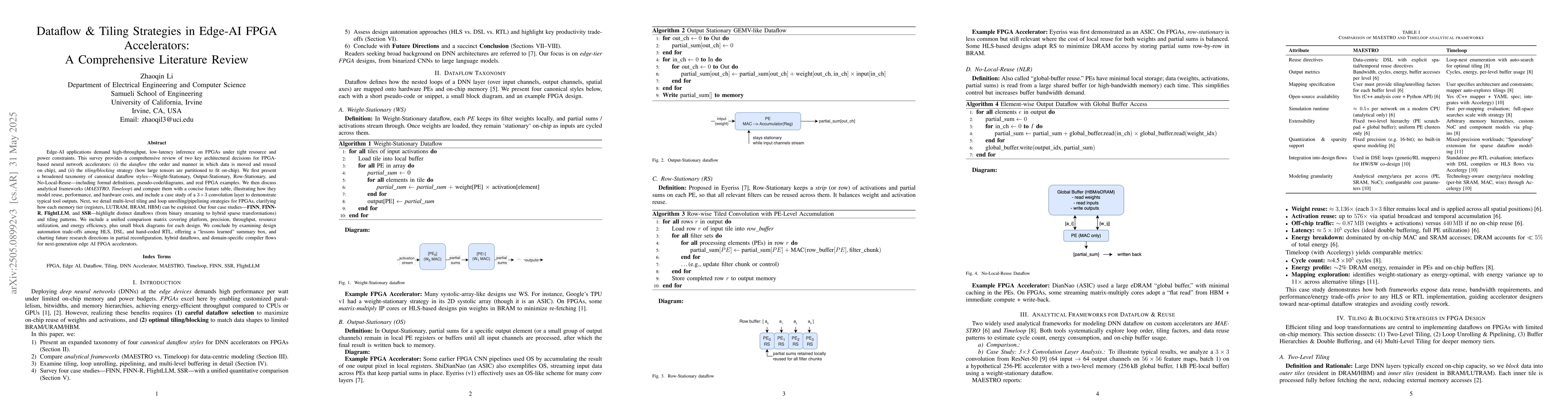 This work differentiates itself by presenting a broadened taxonomy of dataflow styles, comparing multiple analytical frameworks, and providing in-depth case studies, offering a holistic view of dataflow and tiling strategies in edge-AI FPGA accelerators.