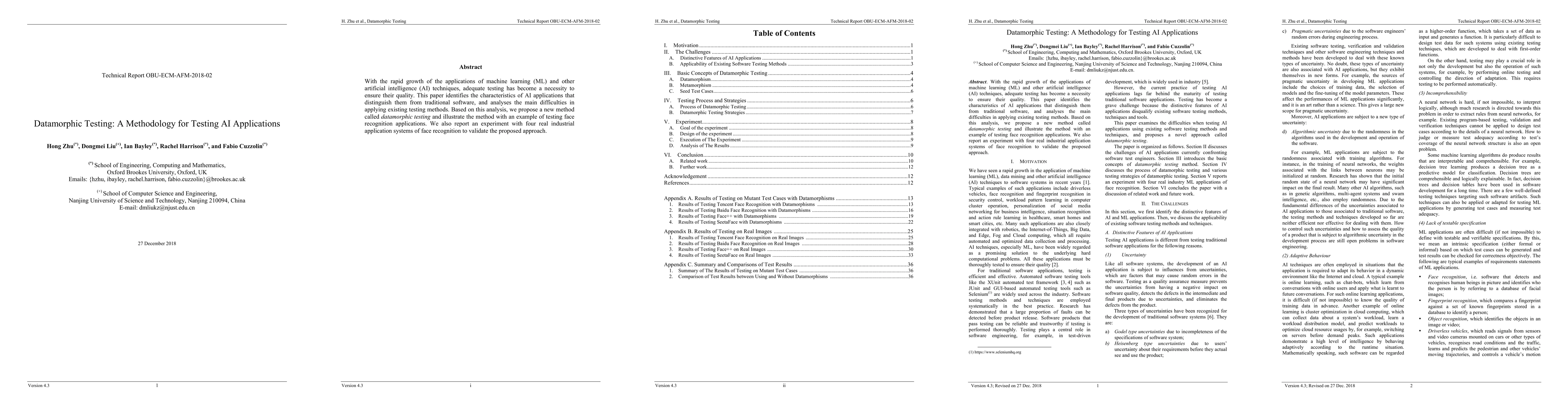 This paper introduces datamorphic testing, a novel methodology tailored for testing AI applications, addressing the unique challenges of AI compared to traditional software. The authors validate their approach through experiments on four industrial face recognition systems.