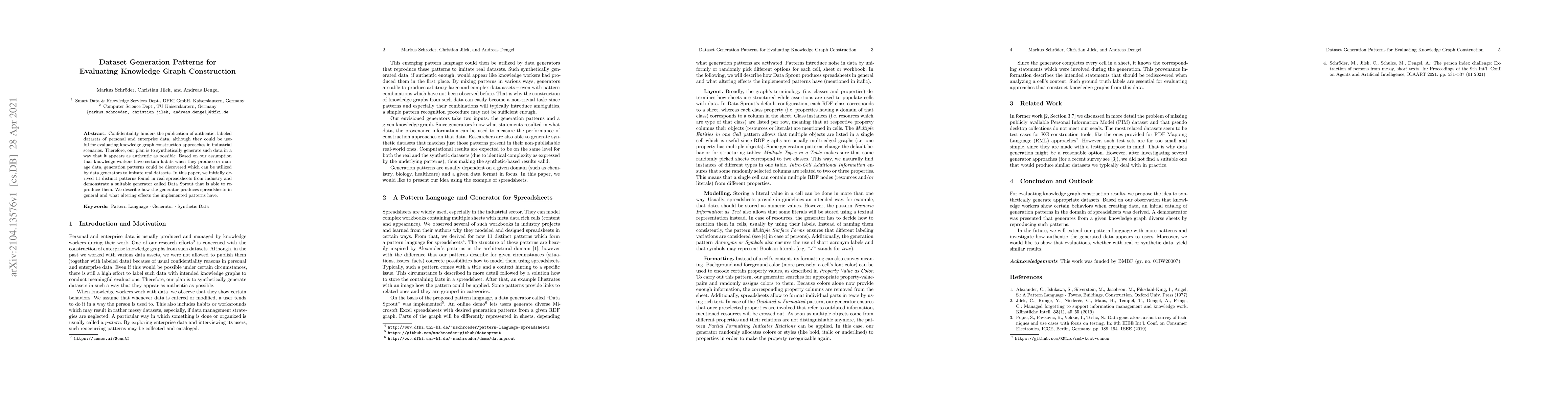 Researchers developed a dataset generation tool called Data Sprout that mimics real data patterns from industry spreadsheets to evaluate knowledge graph construction approaches. The tool reproduces 11 distinct patterns found in real datasets.