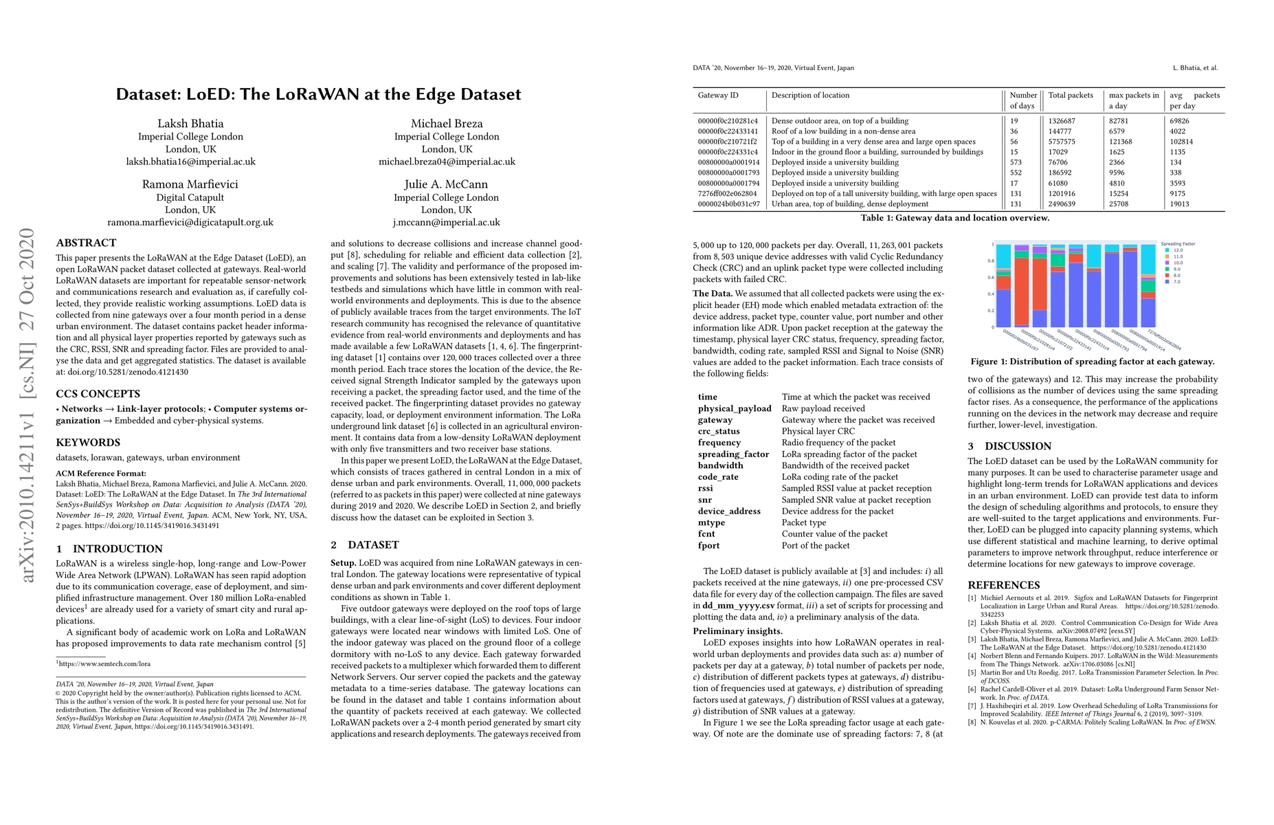 This paper introduces the LoRaWAN at the Edge Dataset (LoED), an open dataset of LoRaWAN packets collected from nine gateways over four months in an urban environment. The dataset includes detailed packet header information and physical layer properties, and is available for sensor-network and communications research. DOI: 10.5281/zenodo.4121430.
