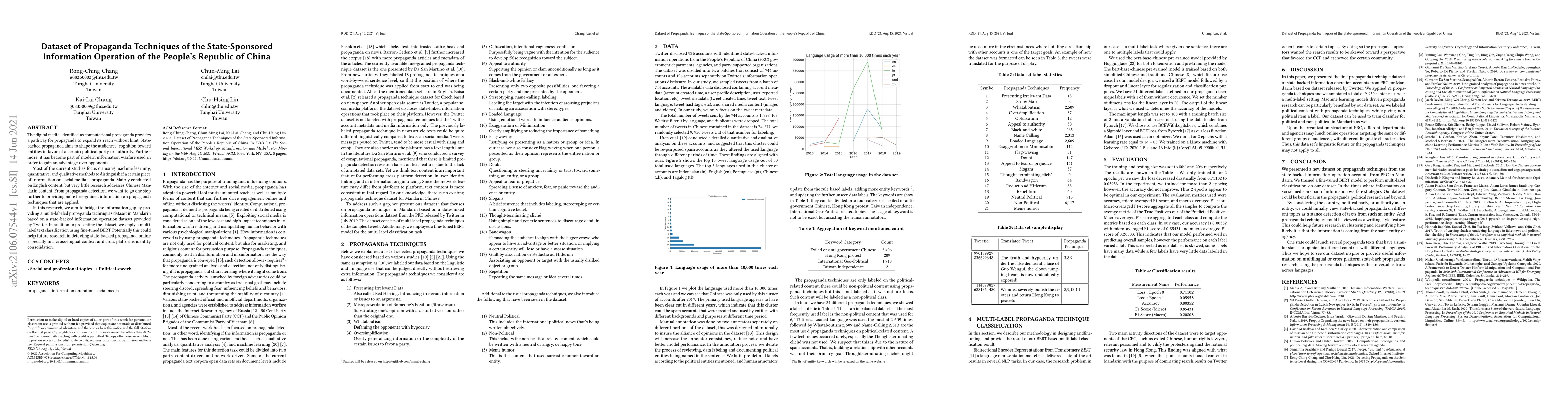 This paper introduces a multi-labeled dataset of propaganda techniques used in state-sponsored information operations by the People's Republic of China, focusing on Mandarin content. It aims to aid future research in detecting such propaganda, leveraging a fine-tuned BERT model for multi-label text classification.