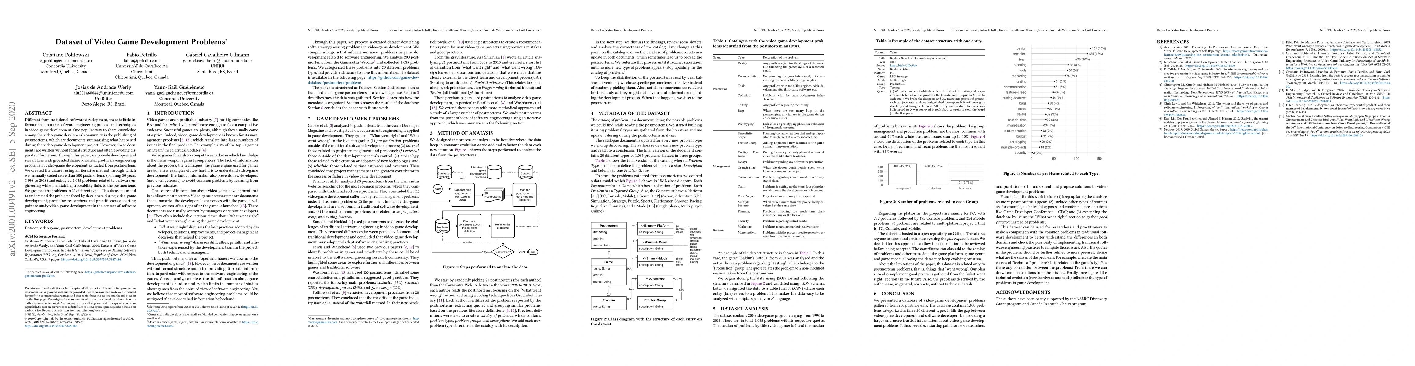 This paper presents a dataset of software-engineering problems in video-game development extracted from postmortems. The dataset, created by manually coding over 200 postmortems from 1998 to 2018, includes 1,035 problems grouped into 20 types, offering insights for researchers and developers.