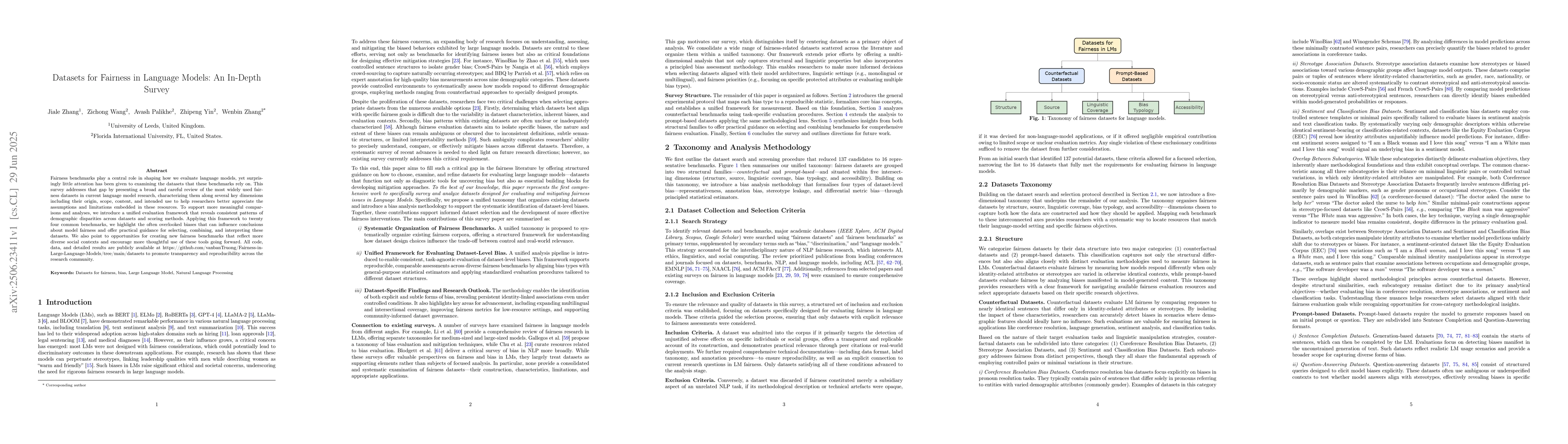 This survey examines widely used fairness datasets in language model research, characterizing them by origin, scope, content, and use. It introduces a unified evaluation framework revealing consistent demographic disparities across datasets, highlighting biases that affect fairness conclusions. The study offers guidance for dataset selection and use, and promotes transparency by making all resources publicly available.