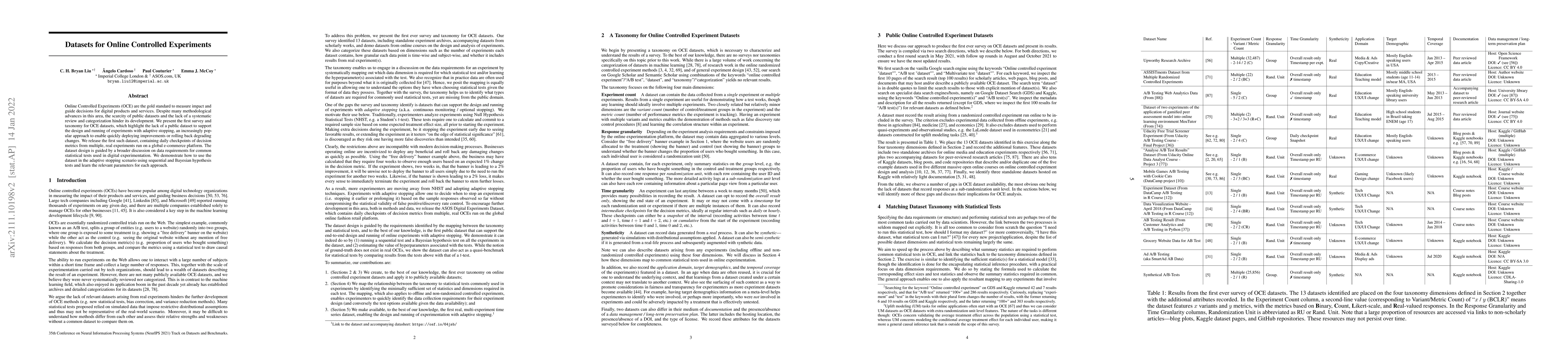 Online Controlled Experiments (OCE) are the gold standard to measure impact and guide decisions for digital products and services. Despite many methodological advances in this area, the scarcity of public datasets and the lack of a systematic review and categorization hinder its development. We present the first survey and taxonomy for OCE datasets, which highlight the lack of a public dataset to support the design and running of experiments with adaptive stopping, an increasingly popular approach to enable quickly deploying improvements or rolling back degrading changes. We release the first such dataset, containing daily checkpoints of decision metrics from multiple, real experiments run on a global e-commerce platform. The dataset design is guided by a broader discussion on data requirements for common statistical tests used in digital experimentation. We demonstrate how to use the dataset in the adaptive stopping scenario using sequential and Bayesian hypothesis tests and learn the relevant parameters for each approach.