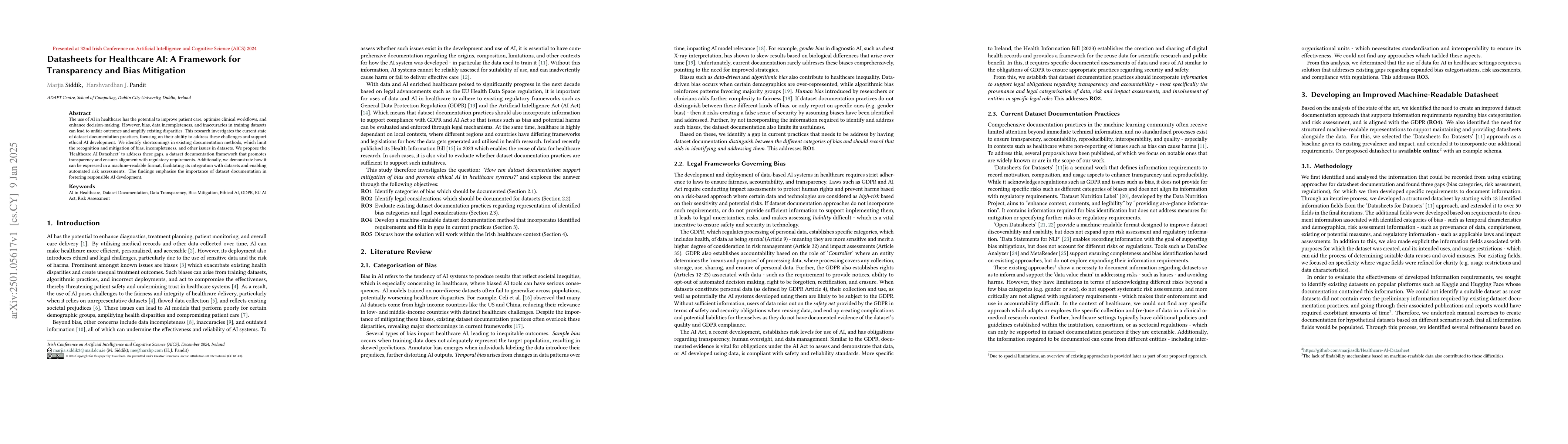 The use of AI in healthcare has the potential to improve patient care, optimize clinical workflows, and enhance decision-making. However, bias, data incompleteness, and inaccuracies in training datasets can lead to unfair outcomes and amplify existing disparities. This research investigates the current state of dataset documentation practices, focusing on their ability to address these challenges and support ethical AI development. We identify shortcomings in existing documentation methods, which limit the recognition and mitigation of bias, incompleteness, and other issues in datasets. We propose the 'Healthcare AI Datasheet' to address these gaps, a dataset documentation framework that promotes transparency and ensures alignment with regulatory requirements. Additionally, we demonstrate how it can be expressed in a machine-readable format, facilitating its integration with datasets and enabling automated risk assessments. The findings emphasise the importance of dataset documentation in fostering responsible AI development.