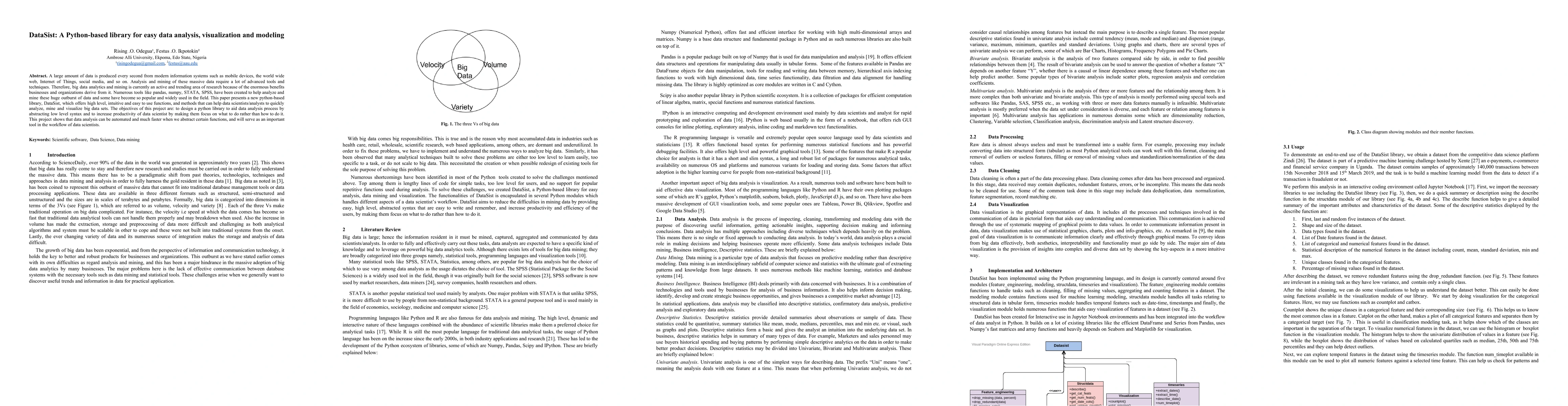 DataSist is a new Python-based library designed to simplify data analysis, visualization, and modeling, aiming to abstract low-level syntax and boost the productivity of data scientists. It seeks to automate and accelerate the data analysis process by providing high-level, intuitive functions.