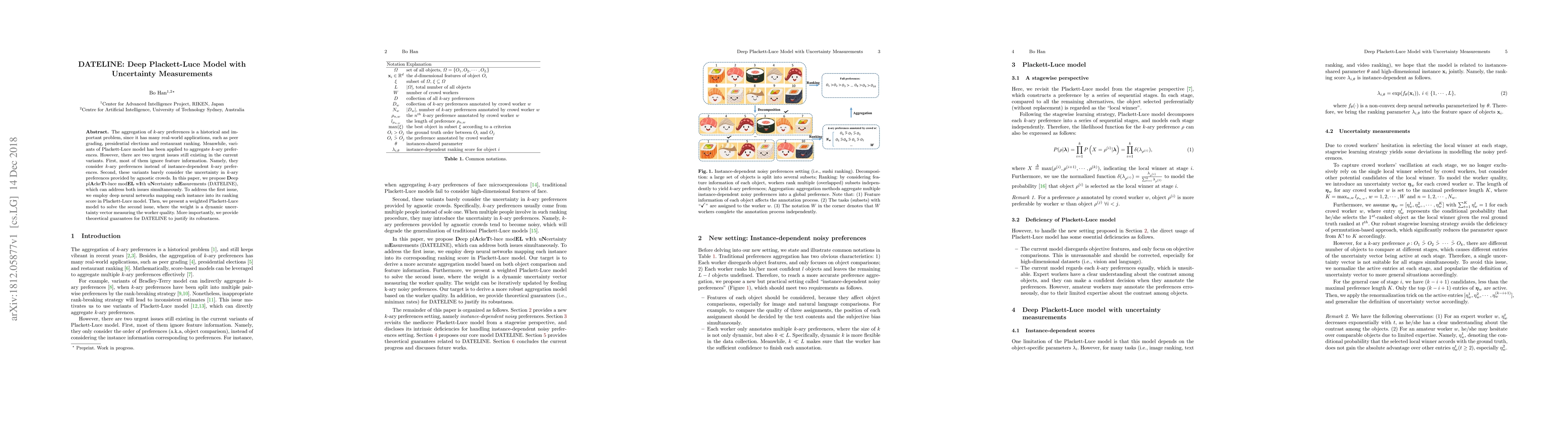 This paper introduces DATELINE, a Deep Plackett-Luce Model with Uncertainty Measurements, to address the aggregation of instance-dependent k-ary preferences while incorporating uncertainty from diverse sources. It uses deep neural networks for preference mapping and a weighted Plackett-Luce model with dynamic uncertainty vectors to ensure robustness.