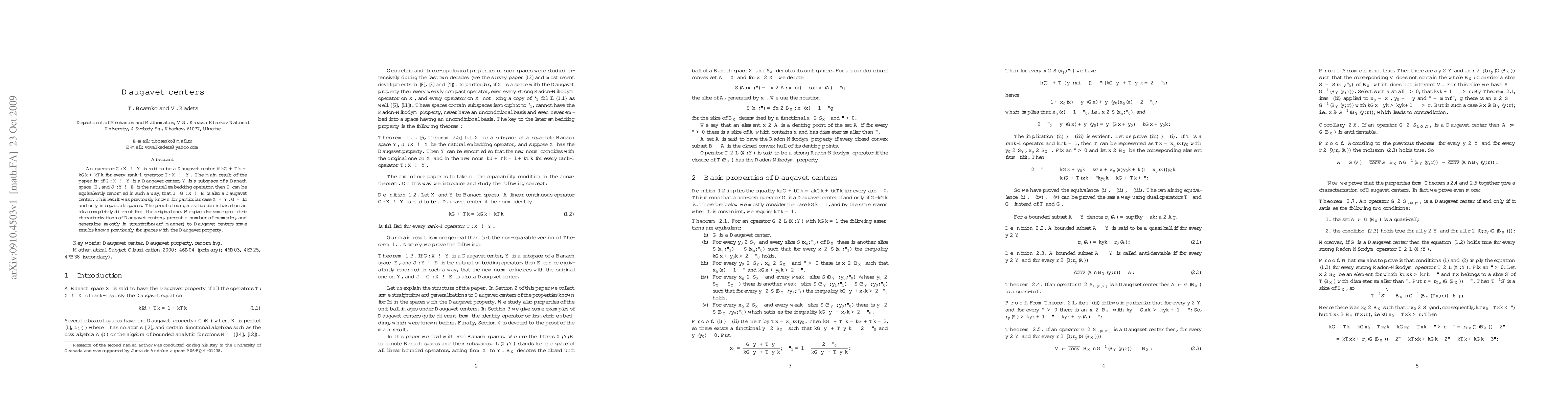 An operator $G : \allowbreak X \to Y$ is said to be a Daugavet center if $\|G + T\| = \|G\| + \|T\|$ for every rank-1 operator $T : \allowbreak X \to Y$. The main result of the paper is: if $G : \allowbreak X \to Y$ is a Daugavet center, $Y$ is a subspace of a Banach space $E$, and $J: Y \to E$ is the natural embedding operator, then $E$ can be equivalently renormed in such a way, that $J \circ G : X \to E$ is also a Daugavet center. This result was previously known for particular case $X=Y$, $G=\mathrm{Id}$ and only in separable spaces. The proof of our generalization is based on an idea completely different from the original one. We give also some geometric characterizations of Daugavet centers, present a number of examples, and generalize (mostly in straightforward manner) to Daugavet centers some results known previously for spaces with the Daugavet property.