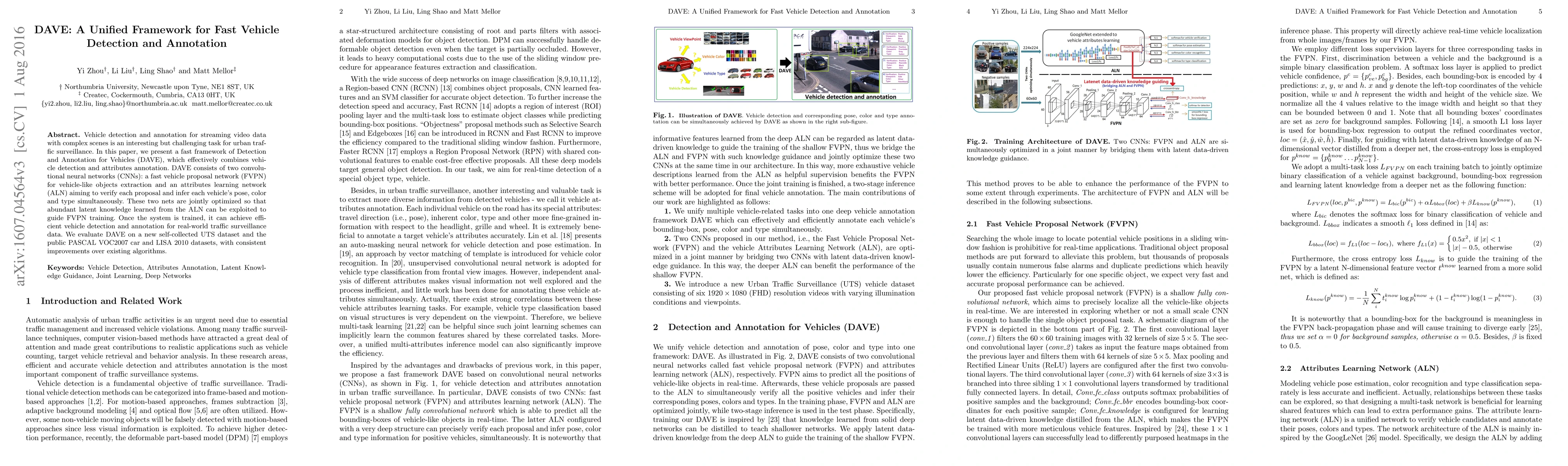 DAVE is a unified framework combining fast vehicle detection and annotation using two convolutional neural networks. It achieves efficient real-time performance for urban traffic surveillance, outperforming existing algorithms on multiple datasets.