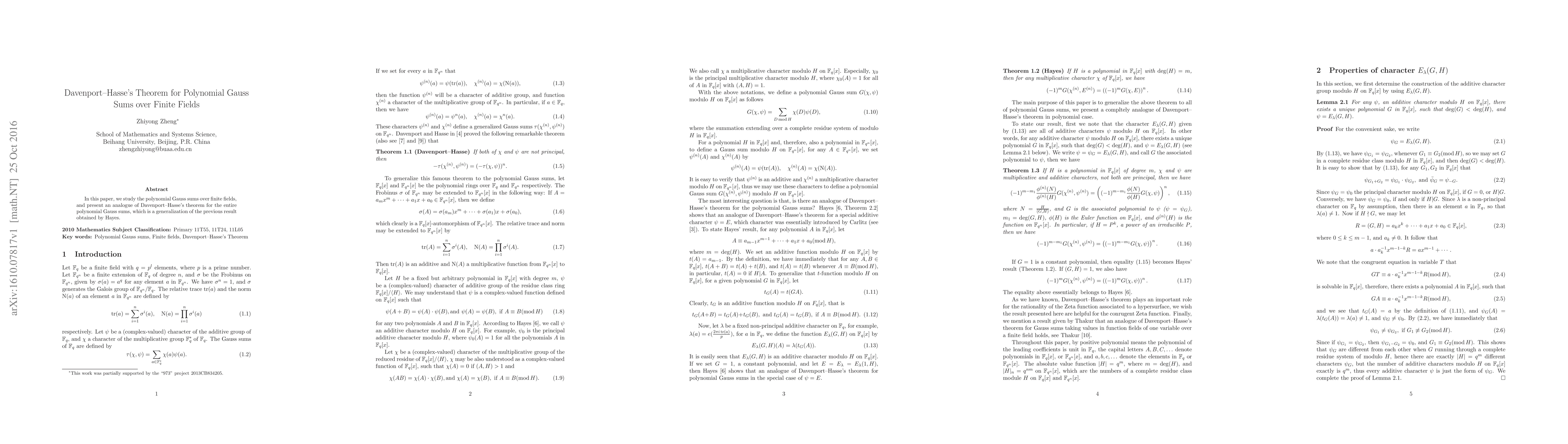 Davenport-Hasse's Theorem is extended to polynomial Gauss sums over finite fields, providing a generalized result that builds upon Hayes's previous findings. This paper establishes an analogue for the entire polynomial Gauss sums.