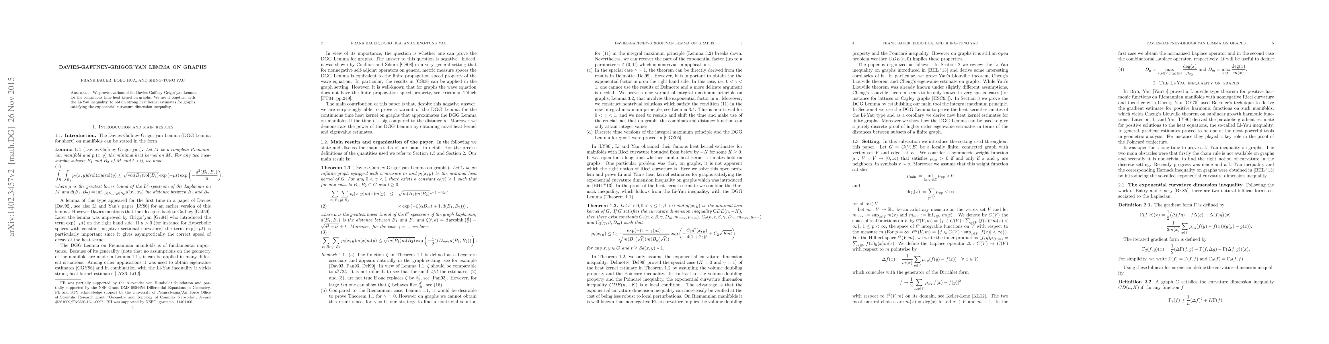 Title: Davies-Gaffney-Grigor'yan Lemma on Graphs Summary: This paper proves a variant of the Davies-Gaffney-Grigor'yan Lemma for continuous-time heat kernels on graphs and employs it alongside the Li-Yau inequality to derive strong heat kernel estimates for graphs fulfilling the exponential curvature dimension condition.
