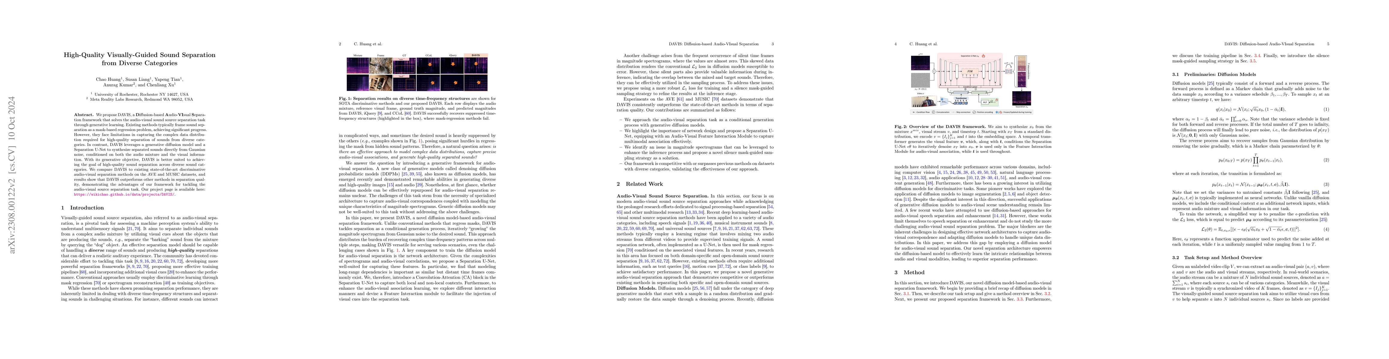 DAVIS is a generative diffusion model-based framework for audio-visual sound source separation, outperforming existing discriminative methods by leveraging a generative approach to synthesize separated sound sources. Results on MUSIC and AVE datasets show superior separation quality.