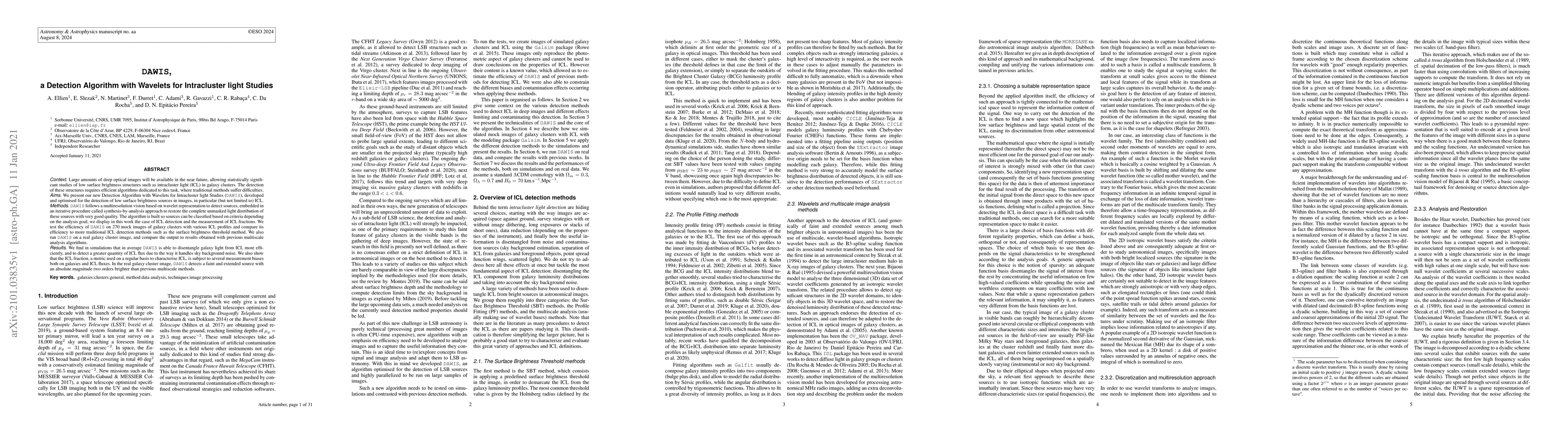DAWIS is a new wavelet-based detection algorithm optimized for identifying low surface brightness intracluster light (ICL) in galaxy clusters. It outperforms traditional methods by effectively separating ICL from galaxy light and detecting more ICL flux, as demonstrated through simulations and real data analysis.