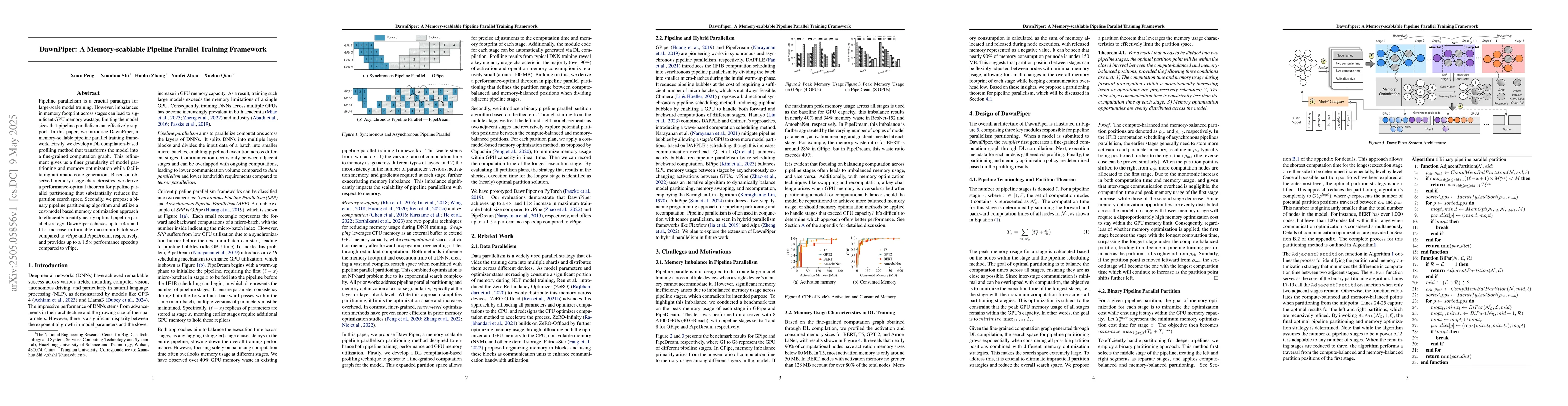 DawnPiper is a memory-scalable pipeline parallel training framework that improves model sizes for large-scale training by optimizing partitioning and memory usage, achieving up to 4x increase in trainable batch size.