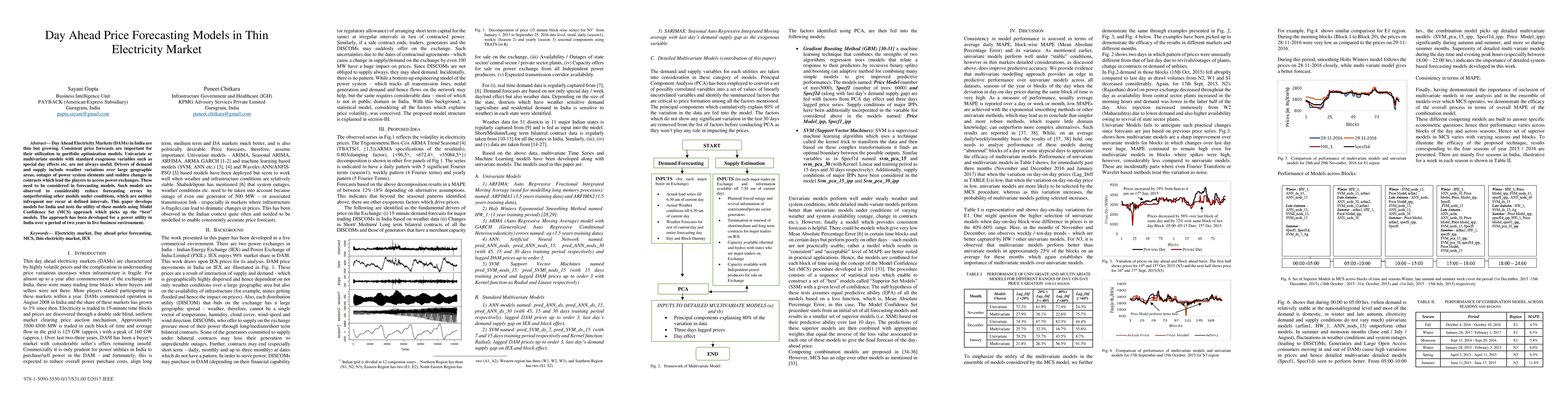 Day Ahead Electricity Markets (DAMs) in India are thin but growing. Consistent price forecasts are important for their utilization in portfolio optimization models. Univariate or multivariate models with standard exogenous variables such as special day effects etc. are not always useful. Drivers of demand and supply include weather variations over large geographic areas, outages of power system elements and sudden changes in contracts which lead the players to access power exchanges. These needs to be considered in forecasting models. Such models are observed to considerably reduce forecasting errors by outperforming other models under conditions, which are neither infrequent nor recur at defined intervals. This paper develops models for India and tests the utility of these models using Model Confidence Set (MCS) approach which picks up the best models. The approach has been developed for a power utility in India over a period of two years in live business environment.
