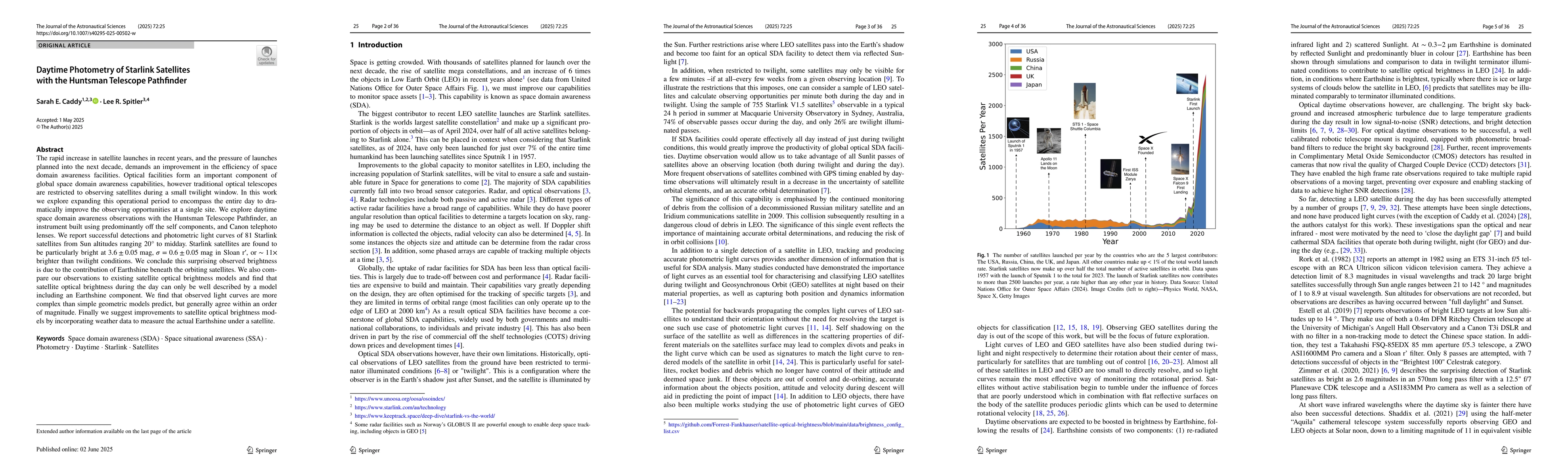 The rapid increase in satellite launches in recent years, and the pressure of launches planned into the next decade, demands an improvement in the efficiency of space domain awareness facilities. Optical facilities form an important component of global space domain awareness capabilities, however traditional optical telescopes are restricted to observing satellites during a small twilight window. In this work we explore expanding this operational period to encompass the entire day to dramatically improve the observing opportunities at a single site. We explore daytime space domain awareness observations with the Huntsman Telescope Pathfinder, an instrument built using predominantly off the self components, and Canon telephoto lenses. We report successful detections and photometric light curves of 81 Starlink satellites from Sun altitudes ranging 20 degrees to midday. Starlink satellites are found to be particularly bright at $3.6 \pm 0.05$ mag, $\sigma = 0.6 \pm 0.05$ mag in Sloan r', or $\sim 11\times$ brighter than twilight conditions. We conclude this surprising observed brightness is due to the contribution of Earthshine beneath the orbiting satellites. We also compare our observations to existing satellite optical brightness models and find that satellite optical brightness during the day can only be well described by a model including an Earthshine component. We find that observed light curves are more complex than simple geometric models predict, but generally agree within an order of magnitude. Finally we suggest improvements to satellite optical brightness models by incorporating weather data to measure the actual Earthshine under a satellite.