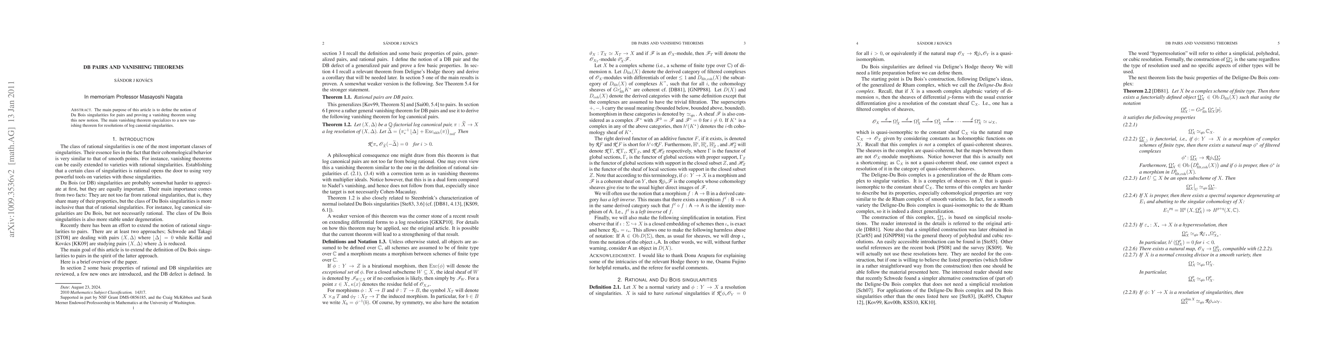 The main purpose of this article is to define the notion of DuBois singularities for pairs and proving a vanishing theorem using this new notion. The main vanishing theorem specializes to a new vanishing theorem for resolutions of log canonial singularities.