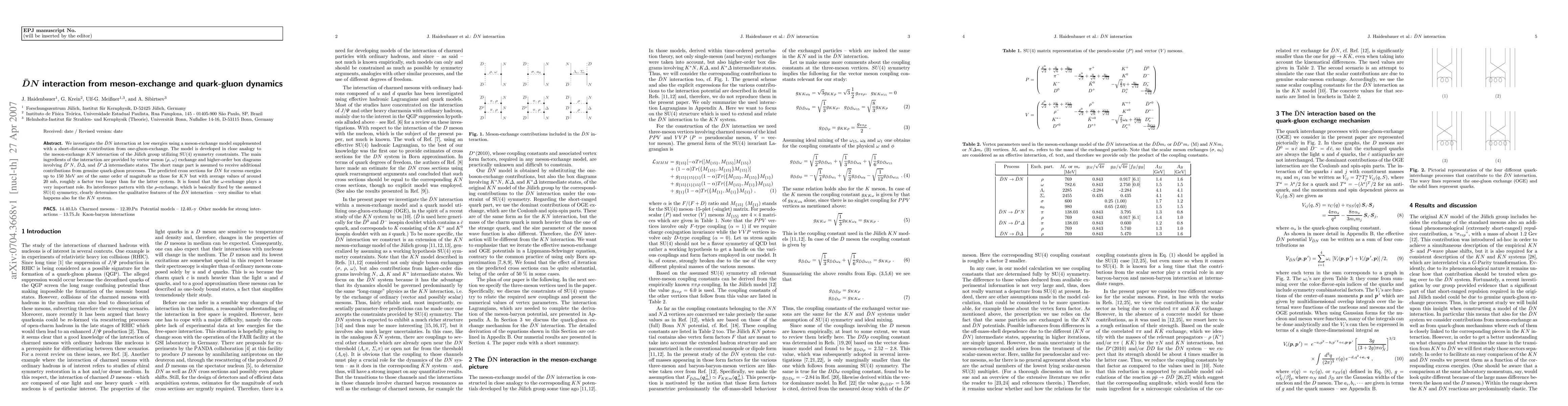Researchers studied the Dbar-N interaction using a meson-exchange model with quark-gluon dynamics, finding predicted cross sections 20 mb for excess energies up to 150 MeV, roughly twice that of the KN system.