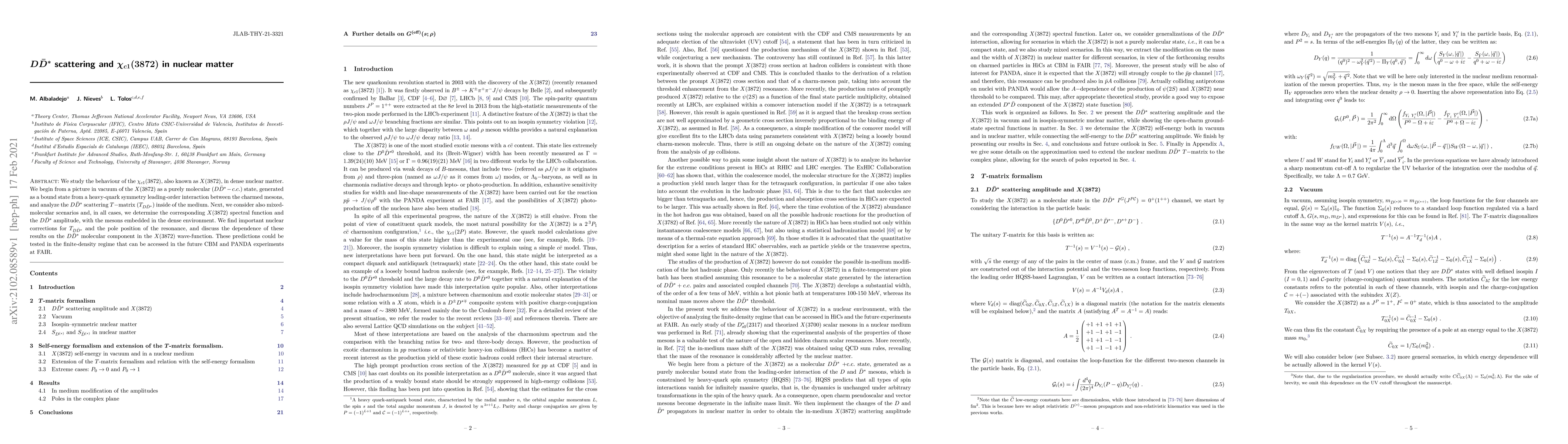 Researchers studied the behavior of the X(3872) particle in dense nuclear matter, finding important corrections to its scattering properties due to nuclear interactions, which could be tested in future experiments.