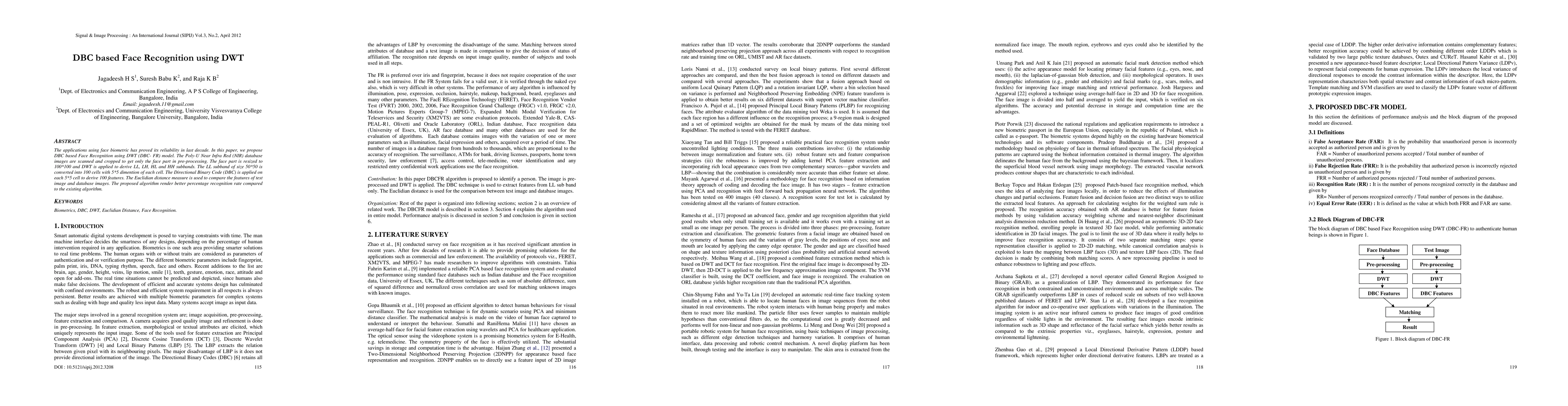This paper introduces DBC-FR, a face recognition model using Discrete Wavelet Transform (DWT) on Poly-U NIR database images. The method involves pre-processing, resizing, and applying DWT to extract features, which are then converted into Directional Binary Codes (DBC) for comparison. The results show improved recognition rates over existing methods.