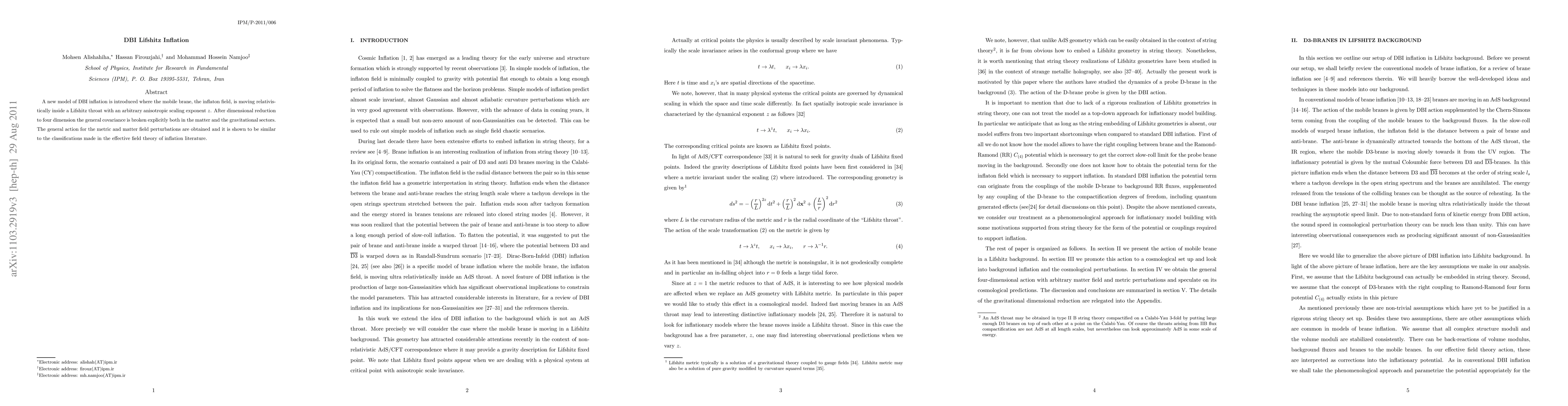 A new model of DBI inflation is introduced where the mobile brane, the inflaton field, is moving relativistically inside a Lifshitz throat with an arbitrary anisotropic scaling exponent $z$. After dimensional reduction to four dimension the general covariance is broken explicitly both in the matter and the gravitational sectors. The general action for the metric and matter field perturbations are obtained and it is shown to be similar to the classifications made in the effective field theory of inflation literature.
