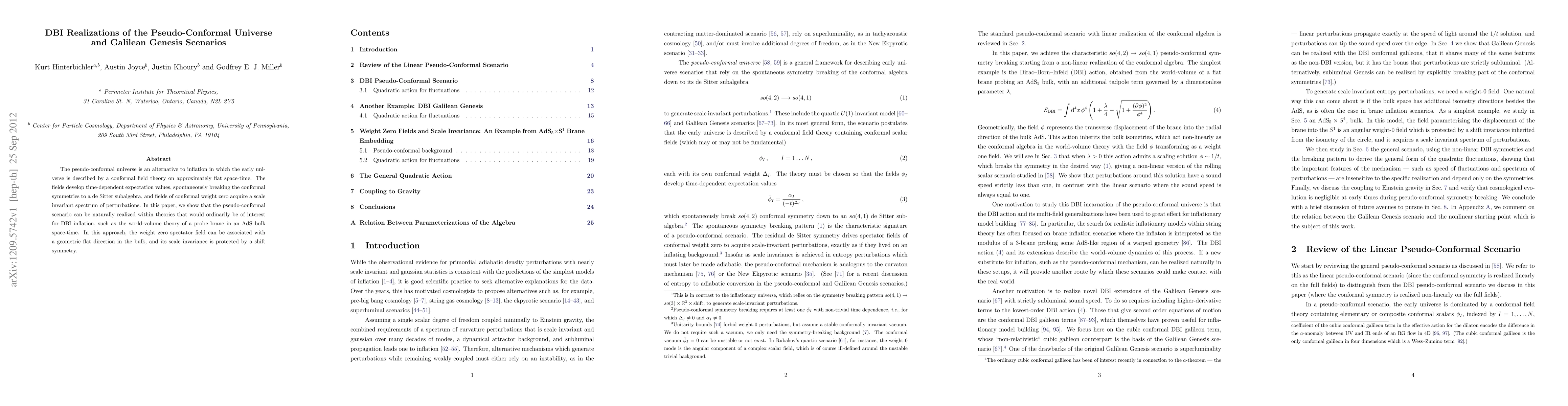 The pseudo-conformal universe is an alternative to inflation in which the early universe is described by a conformal field theory on approximately flat space-time. The fields develop time-dependent expectation values, spontaneously breaking the conformal symmetries to a de Sitter subalgebra, and fields of conformal weight zero acquire a scale invariant spectrum of perturbations. In this paper, we show that the pseudo-conformal scenario can be naturally realized within theories that would ordinarily be of interest for DBI inflation, such as the world-volume theory of a probe brane in an AdS bulk space-time. In this approach, the weight zero spectator field can be associated with a geometric flat direction in the bulk, and its scale invariance is protected by a shift symmetry.