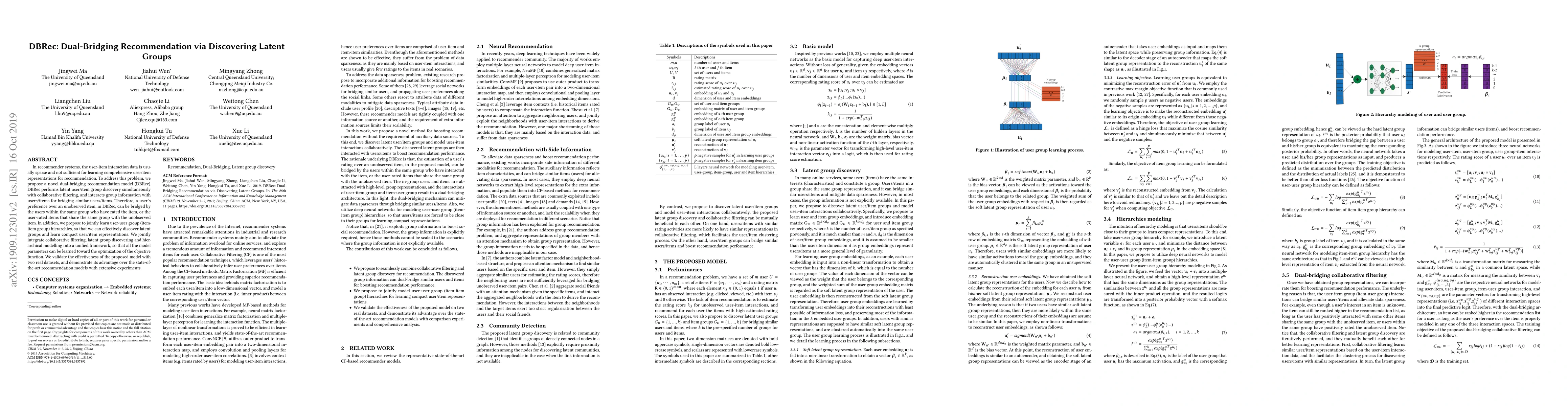 DBRec proposes a new recommendation model that combines collaborative filtering with latent group discovery to improve user-item representation learning. It demonstrates effectiveness over state-of-the-art models on two real datasets.