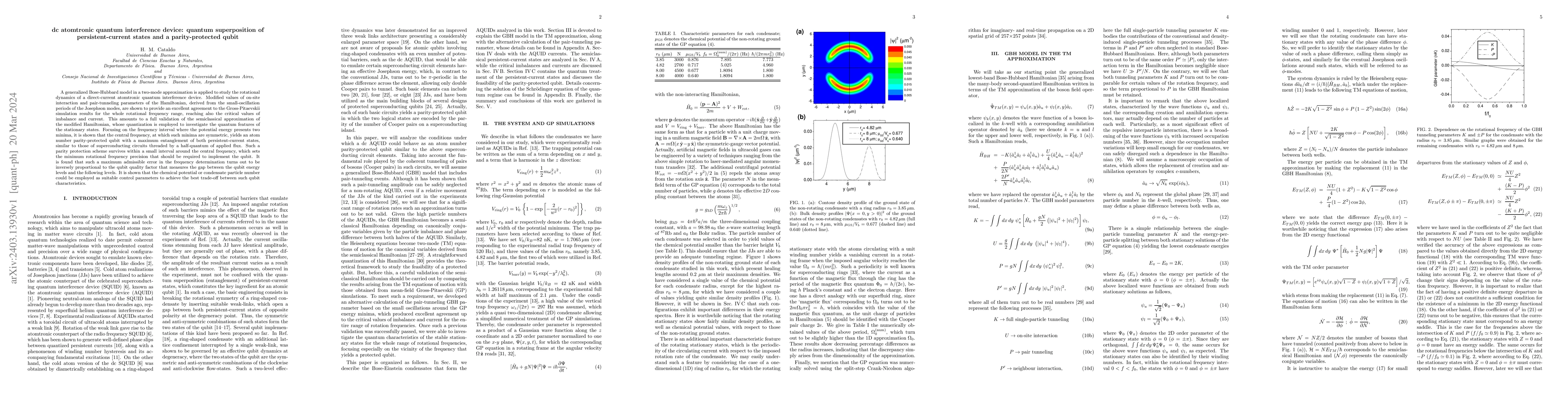 The paper presents a validated semiclassical Hamiltonian for a direct-current atomtronic quantum interference device, demonstrating a parity-protected qubit with potential for high-fidelity quantum operations.