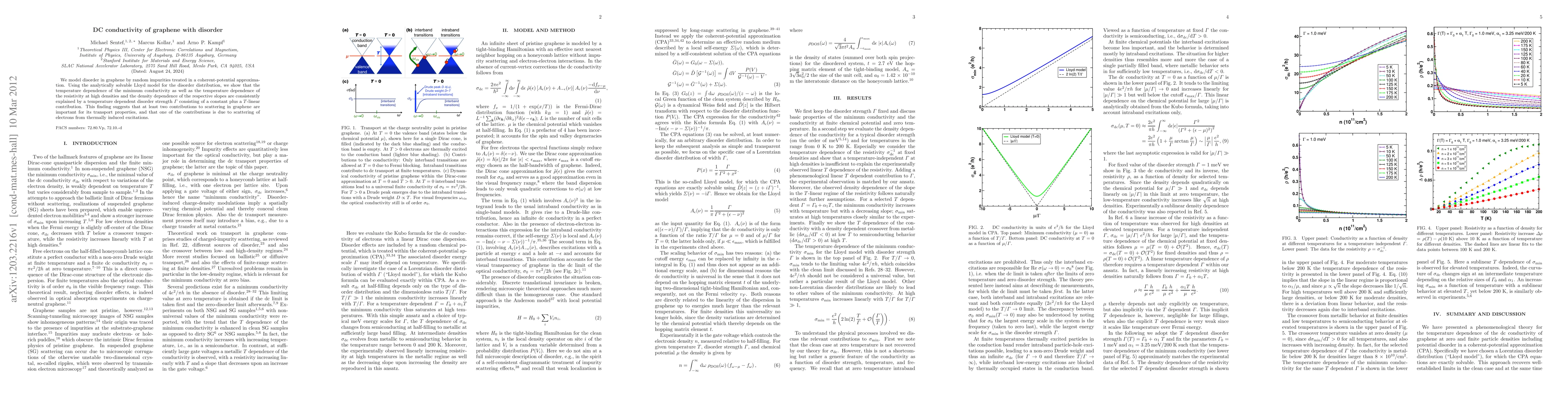 We model disorder in graphene by random impurities treated in a coherent-potential approximation. Using the analytically solvable Lloyd model for the disorder distribution, we show that the temperature dependence of the minimum conductivity as well as the temperature dependence of the resistivity at high densities and the density dependence of the respective slopes are consistently explained by a temperature dependent disorder strength $\Gamma$ consisting of a constant plus a $T$-linear contribution. This finding suggests that at least two contributions to scattering in graphene are important for its transport properties, and that one of the contributions is due to scattering of electrons from thermally induced excitations.