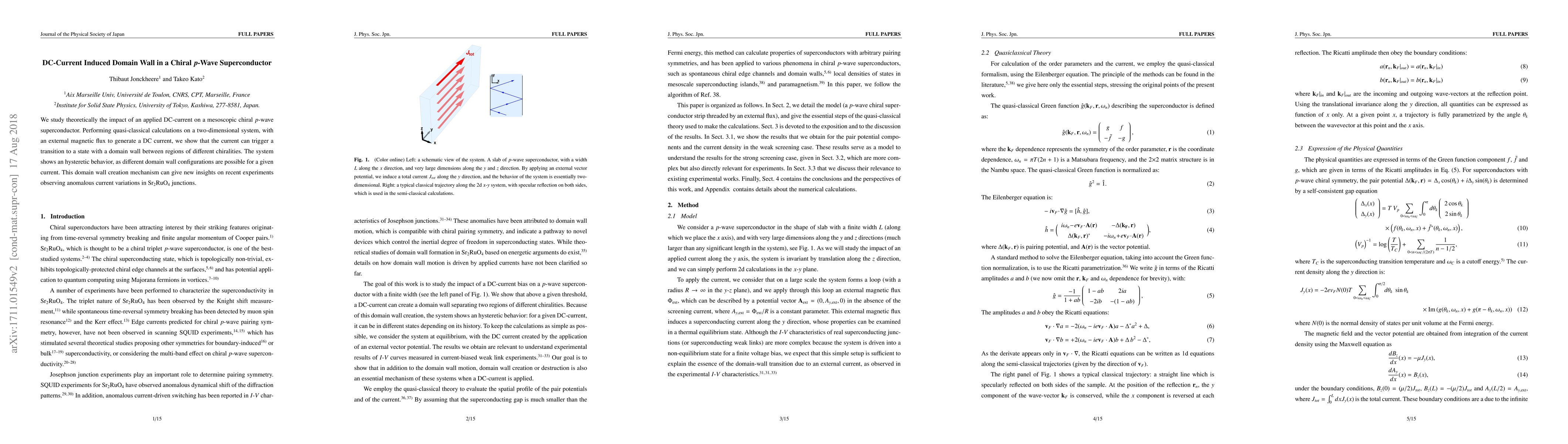 This paper theoretically investigates the effect of a DC-current on a mesoscopic chiral $p$-wave superconductor, revealing that the current can induce a domain wall between regions of different chiralities, exhibiting hysteretic behavior and potentially explaining anomalous current variations observed in Sr${}_2$RuO${}_4$ junctions.