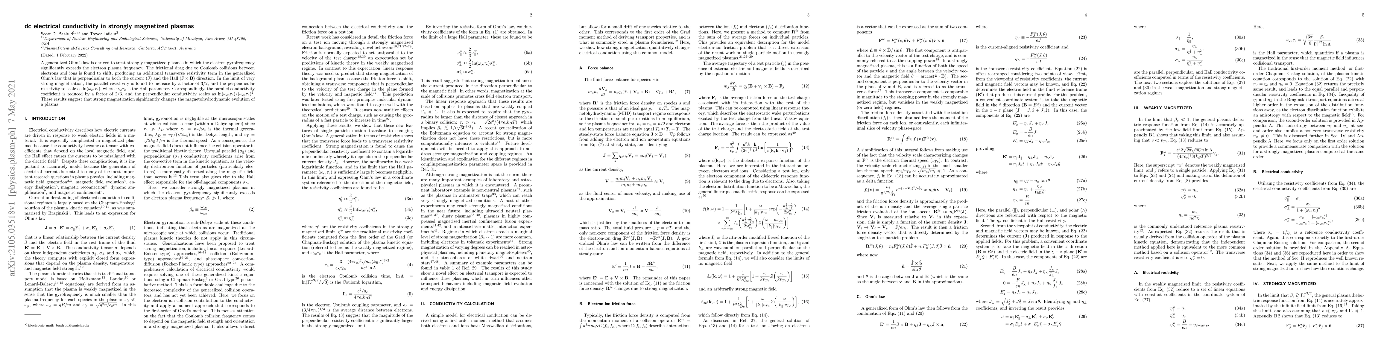 A generalized Ohm's law is derived to treat strongly magnetized plasmas in which the electron gyrofrequency significantly exceeds the electron plasma frequency. The frictional drag due to Coulomb collisions between electrons and ions is found to shift, producing an additional transverse resistivity term in the generalized Ohm's law that is perpendicular to both the current ($\vc{J}$) and the Hall ($\vc{J} \times \vc{B}$) direction. In the limit of very strong magnetization, the parallel resistivity is found to increase by a factor of 3/2, and the perpendicular resistivity to scale as $\ln (\omega_{ce} \tau_e)$, where $\omega_{ce} \tau_e$ is the Hall parameter. Correspondingly, the parallel conductivity coefficient is reduced by a factor of 2/3, and the perpendicular conductivity scales as $\ln(\omega_{ce} \tau_e)/(\omega_{ce} \tau_e)^2$. These results suggest that strong magnetization significantly changes the magnetohydrodynamic evolution of a plasma.