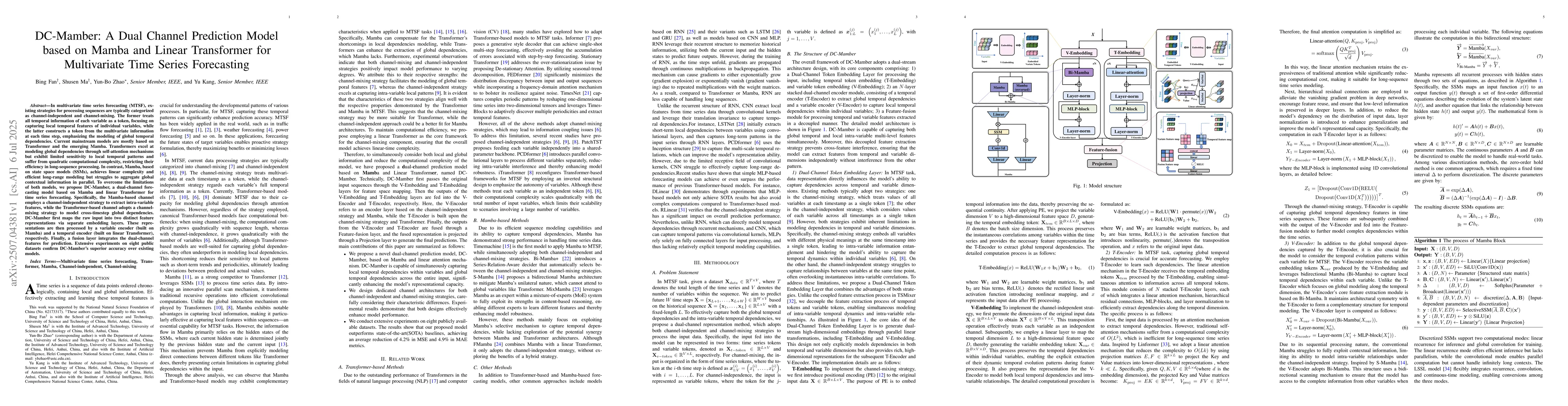 The research introduces DC-Mamber, a dual-channel model for multivariate time series forecasting that combines Mamba's local feature extraction with a linear Transformer's global dependency modeling. This model outperforms existing methods in accuracy, as demonstrated through experiments on eight public datasets.