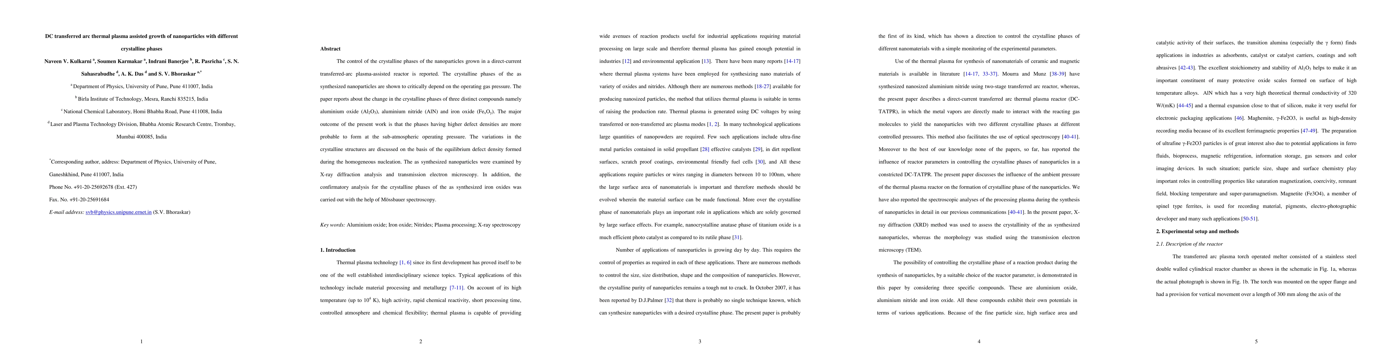 The control of the crystalline phases of the nanoparticles grown in a direct-current transferred-arc plasma-assisted reactor is reported. The crystalline phases of the as synthesized nanoparticles are shown to critically depend on the operating gas pressure. The paper reports about the change in the crystalline phases of three distinct compounds namely aluminium oxide (Al2O3), aluminium nitride (AlN) and iron oxide (FexOy). The major outcome of the present work is that the phases having higher defect densities are more probable to form at the sub-atmospheric operating pressure. The variations in the crystalline structures are discussed on the basis of the equilibrium defect density formed during the homogeneous nucleation. The as synthesized nanoparticles were examined by X-ray diffraction analysis and transmission electron microscopy. In addition, the confirmatory analysis for the crystalline phases of the as synthesized iron oxides was carried out with the help of Mossbauer spectroscopy.