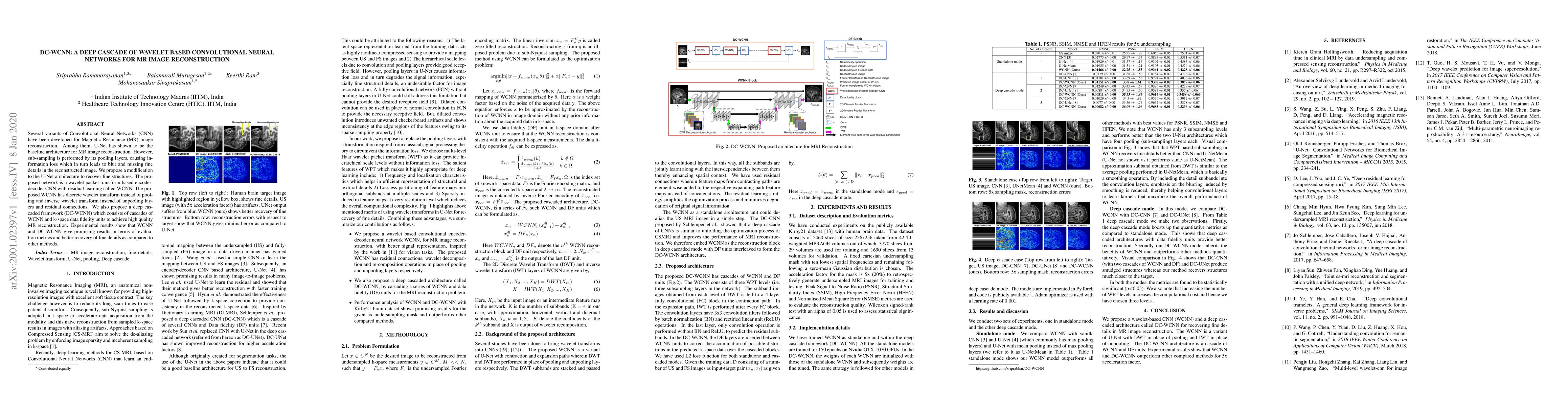 The paper proposes a wavelet packet transform based convolutional neural network (WCNN) with residual learning to improve MR image reconstruction by reducing information loss. It further introduces a deep cascaded framework (DC-WCNN) that combines multiple WCNNs and k-space data fidelity units, achieving superior reconstruction quality and better recovery of fine image details compared to existing methods.