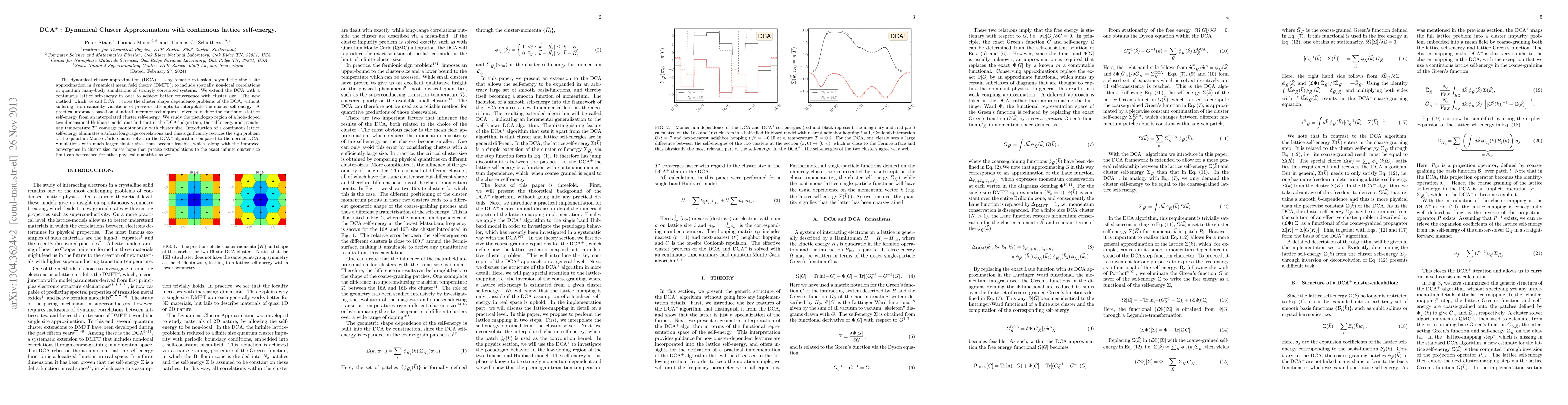 The paper introduces DCA$^+$, an enhanced version of the dynamical cluster approximation (DCA) that includes a continuous lattice self-energy to improve convergence and reduce the cluster shape dependence issues. This method significantly reduces the sign problem and enables simulations with larger clusters, potentially allowing for more accurate extrapolations to the infinite cluster size limit.