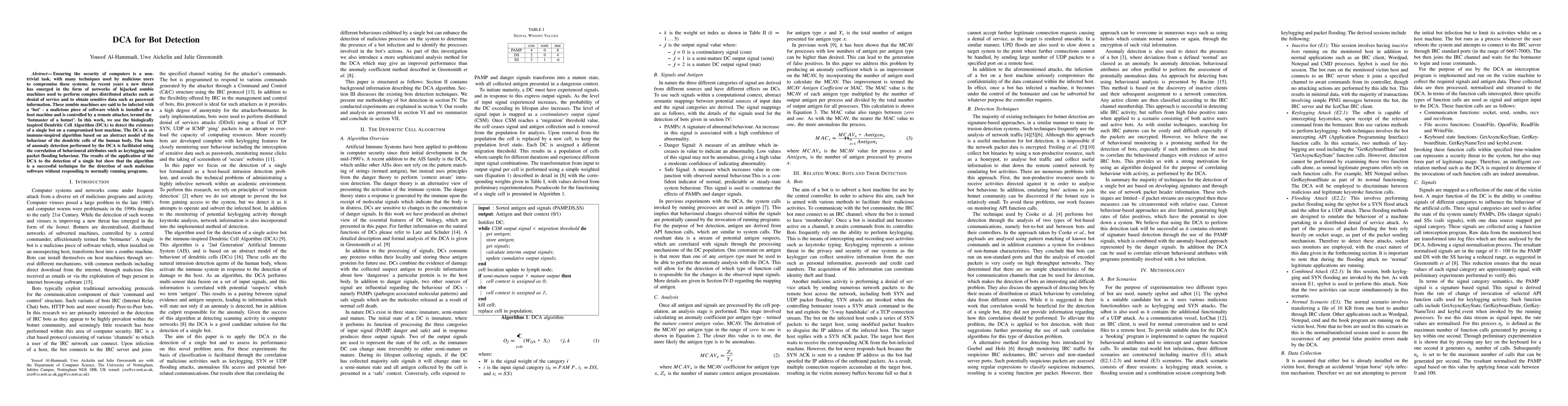 This paper explores the use of the biologically inspired Dendritic Cell Algorithm (DCA) for detecting single bots on compromised machines. The DCA, based on the behavior of human dendritic cells, identifies malicious software through behavioral attributes like keylogging and packet flooding, demonstrating effective bot detection without interfering with normal programs.
