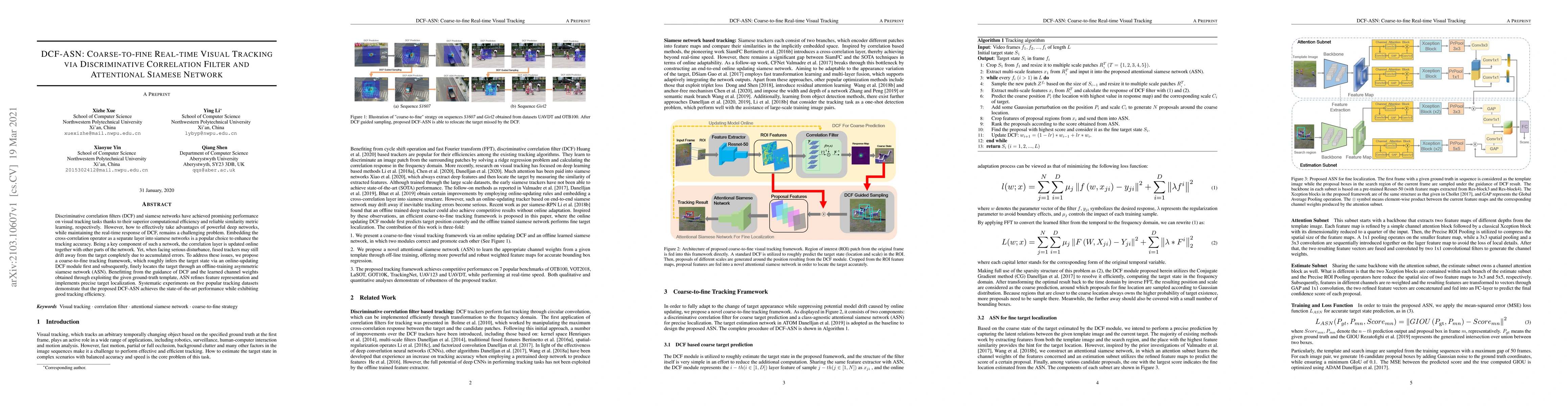 The paper proposes a coarse-to-fine tracking framework named DCF-ASN that combines discriminative correlation filters (DCF) and an attentional Siamese network (ASN) for real-time visual tracking. The DCF module provides an initial target state inference, while the ASN refines localization with learned channel weights, achieving state-of-the-art performance and efficiency.